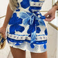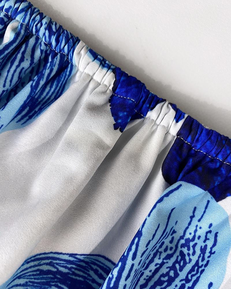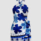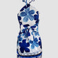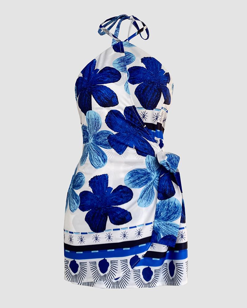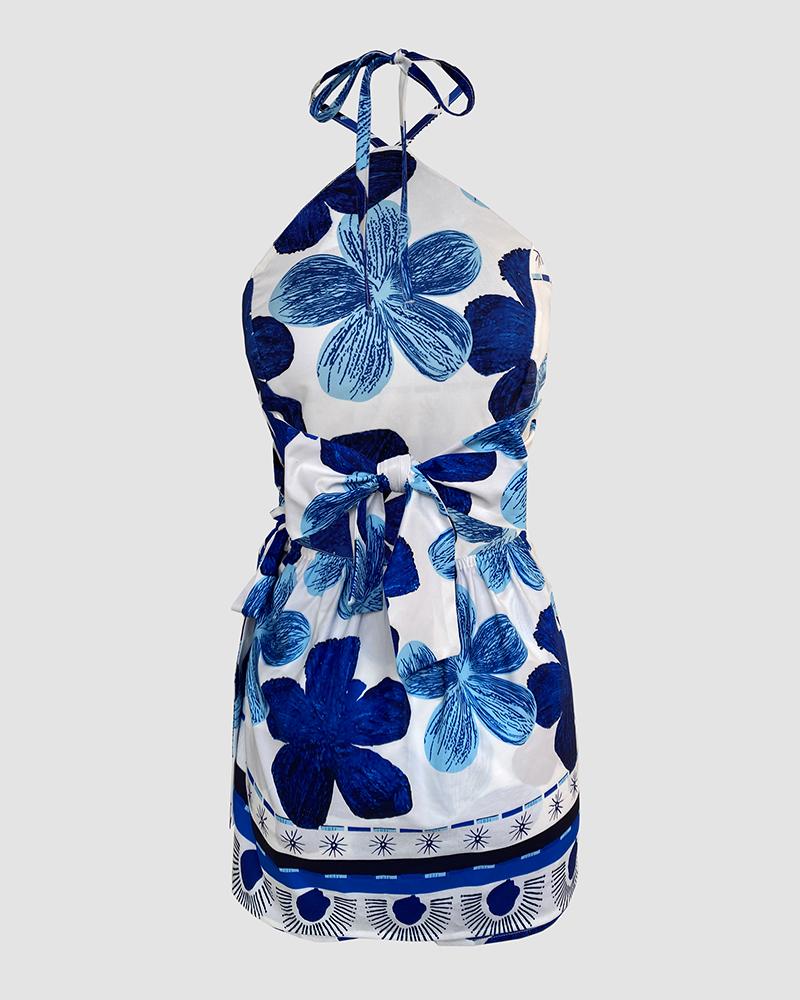 Floral Print Halter Neck Tie Waist One Piece Romper with Skirted Detail