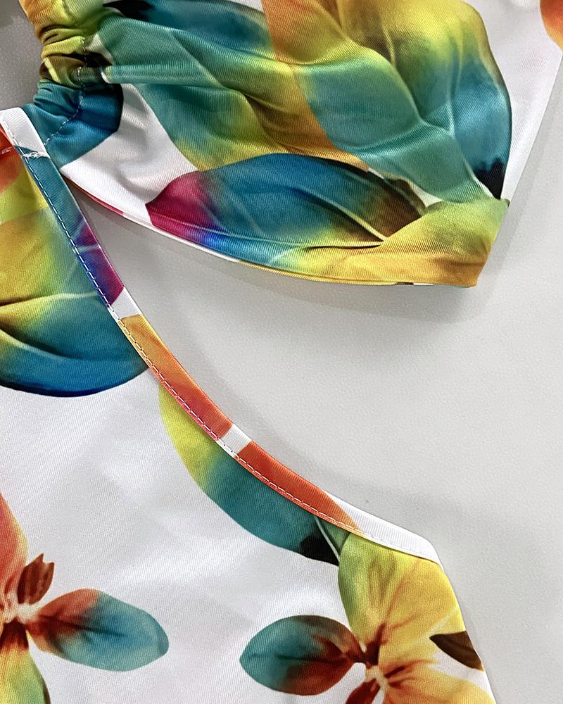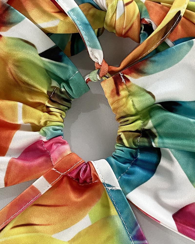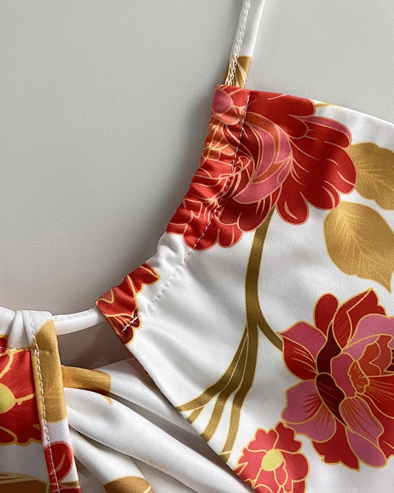 Floral Print Halter Sleeveless A Line Mini Dress Sexy Waist Hollow Out Vacation Dress