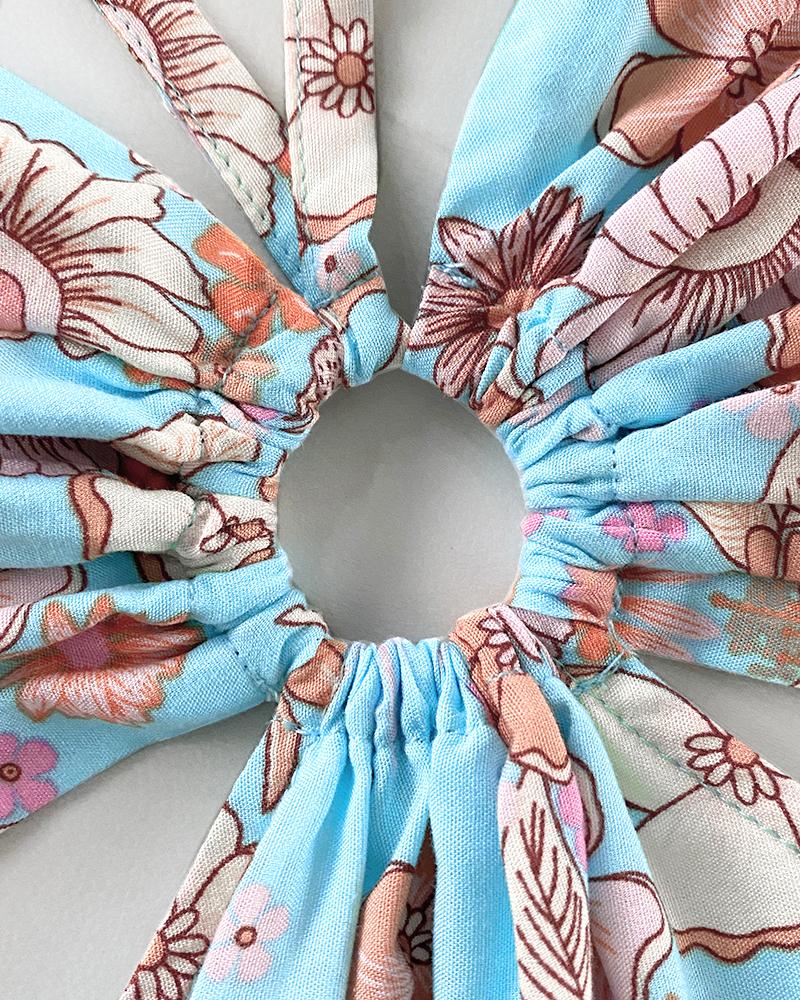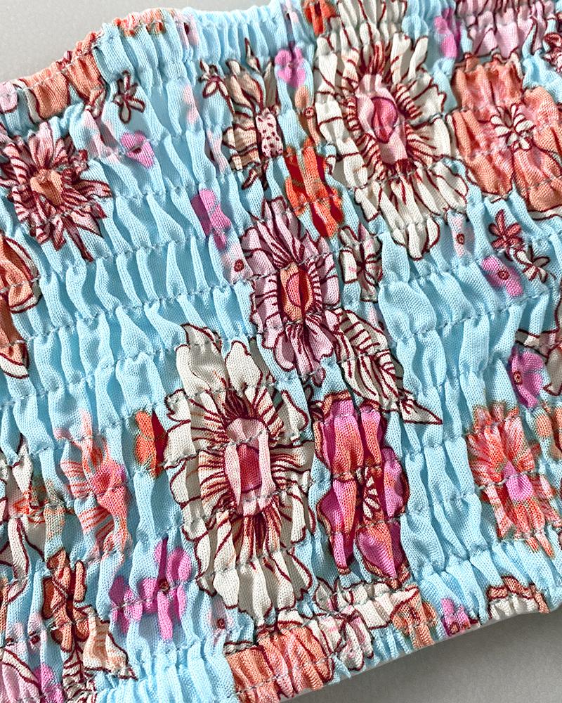 Floral Print Halter Tied Detail Elastic Shirred Back Mini Dress Casual Hollow Out A Line Dress