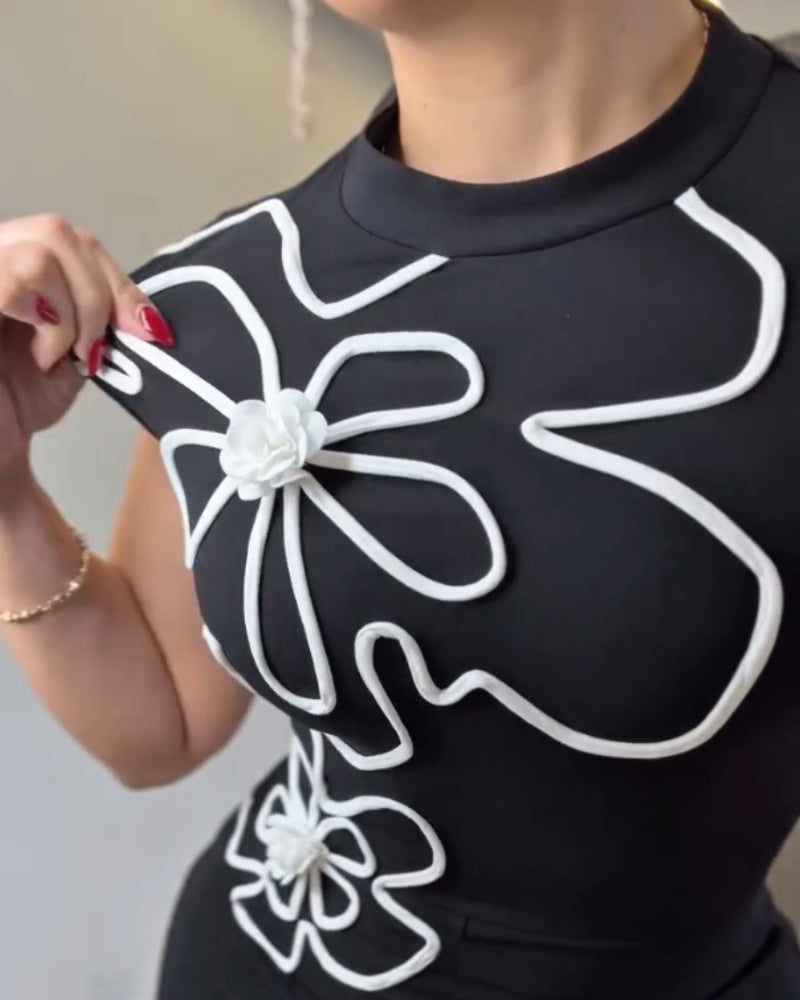 Floral Print High Neck Sleeveless Elegent Jumpsuit