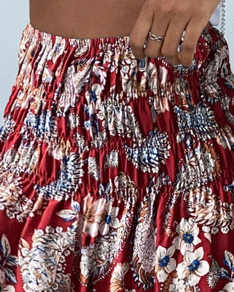 Floral Print High Waist Strechy Shirred Shorts Casual Loose Fit Shorts