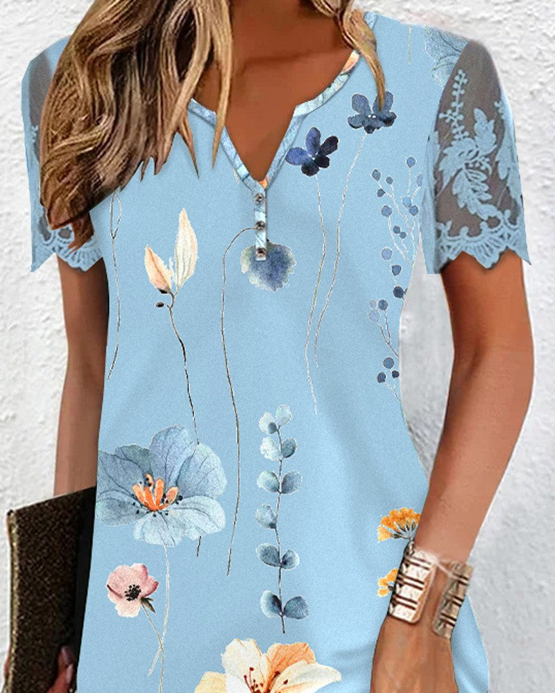 Floral Print Lace Patch Casual Dress