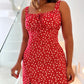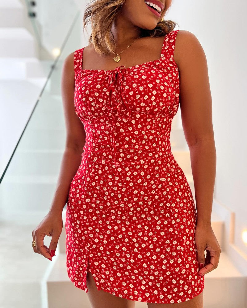 Floral Print Lace up Square Neck Spaghetti Strap Romper Casual Shirred Split Dress Jumpsuit
