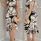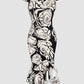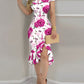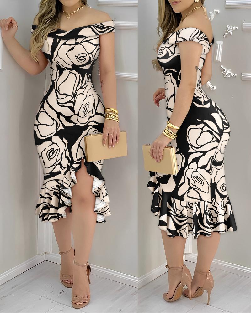 Floral Print Off Shoulder Bodycon Dress Ruffle Hem Slim Fit Dress
