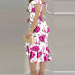 Floral Print Off Shoulder Bodycon Dress Ruffle Hem Slim Fit Dress