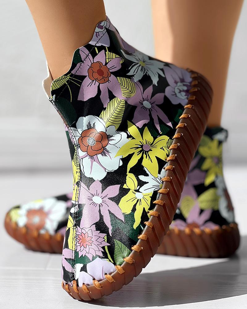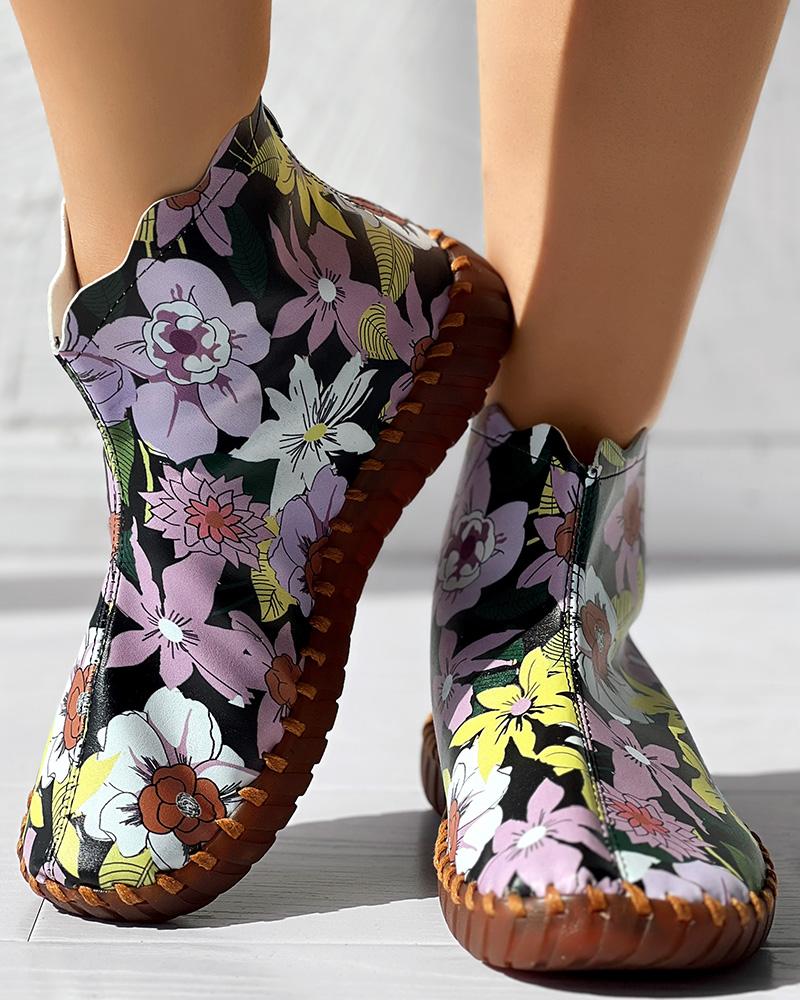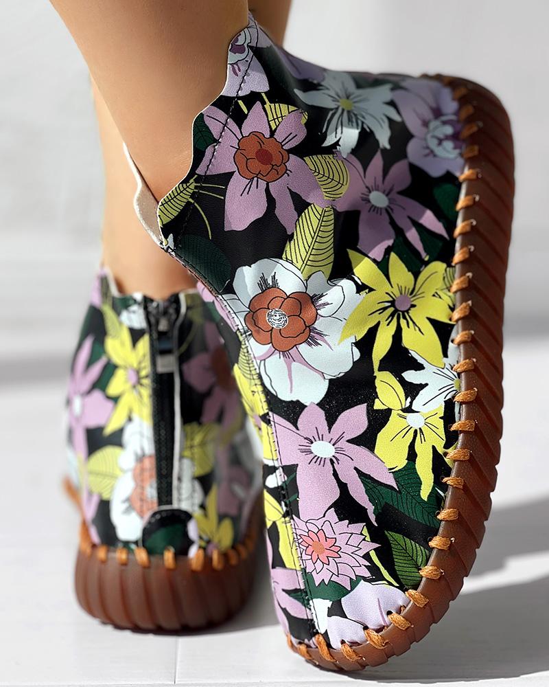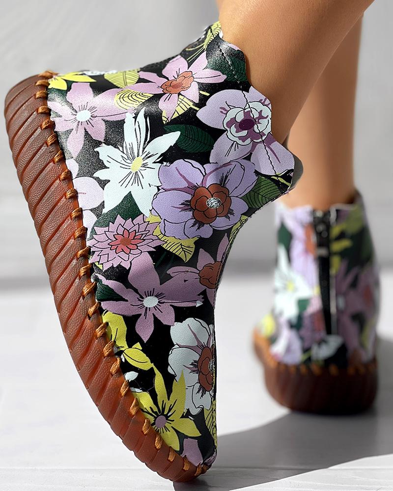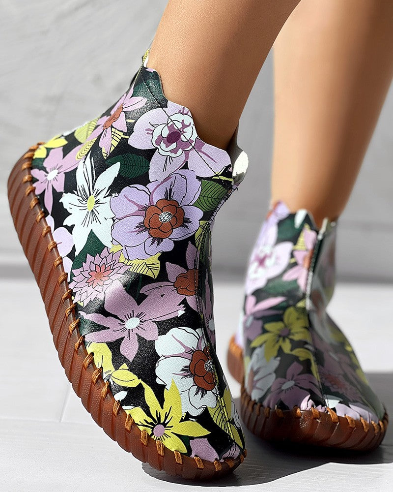 Floral Print Platform Ankle Boots