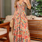 Floral Print Plunge V Neck Backless Maxi Dress Casual Halter Ruffles Hem A Line Dress