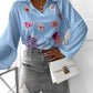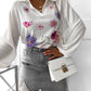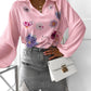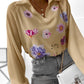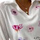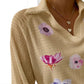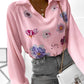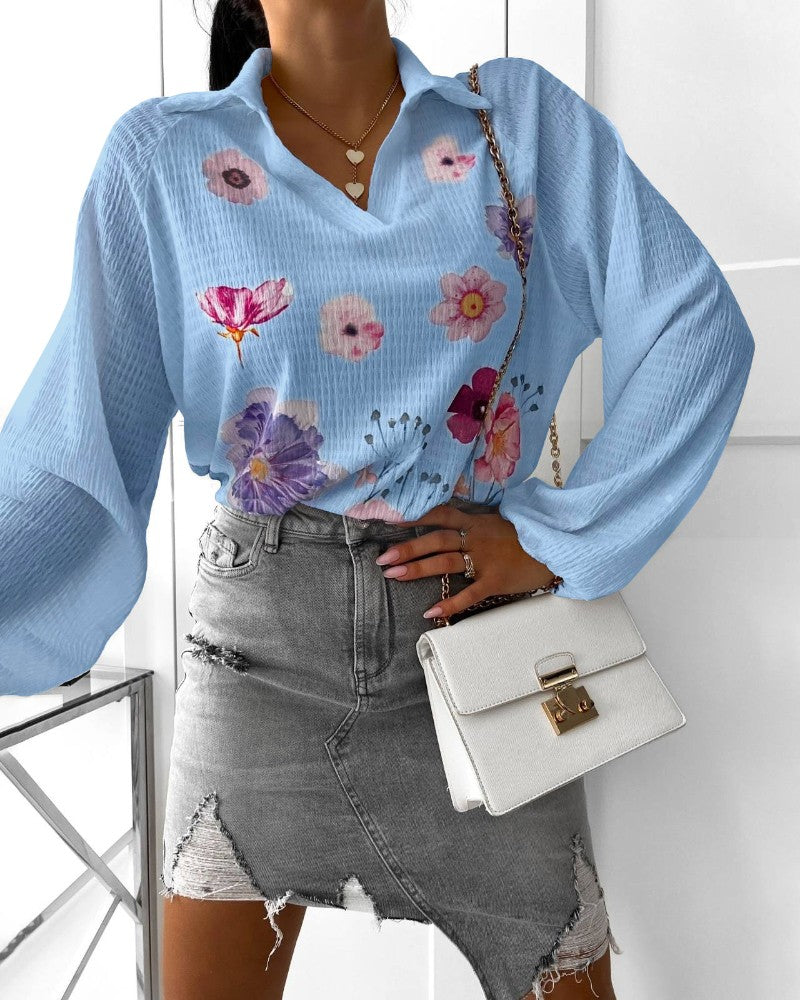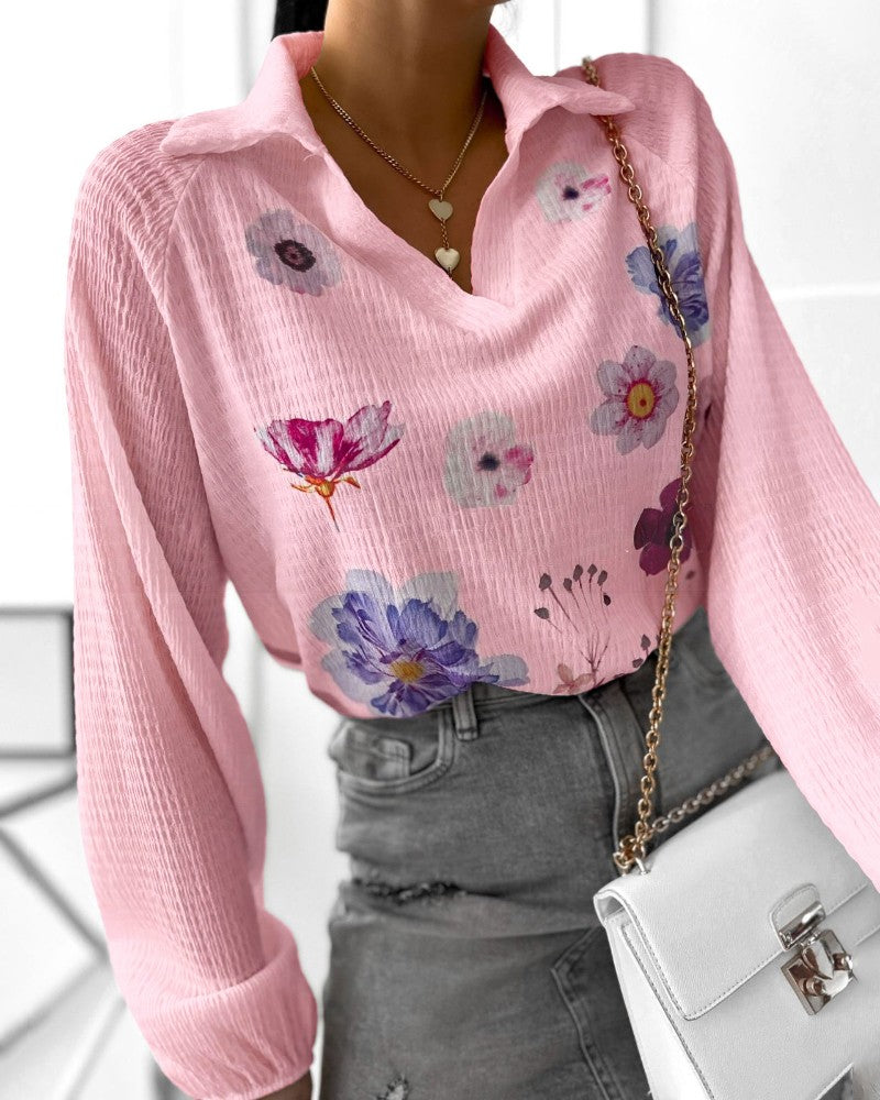 Floral Print Polo Collar Long Sleeve Blouse Casual Pullover Shirt Top