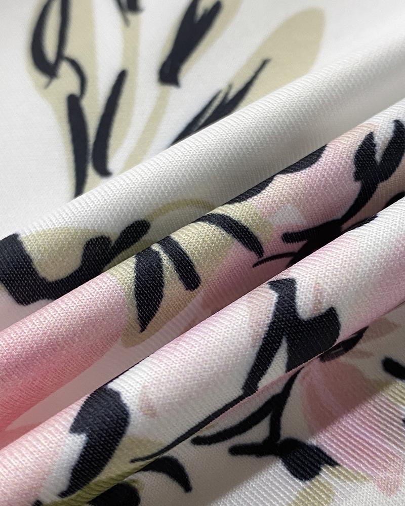 Floral Print Puff Sleeve Double Breasted Blazer Coat & Skirt Set