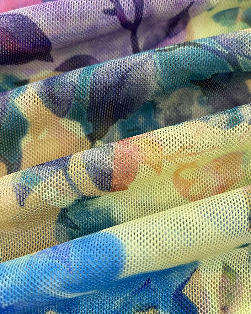Floral Print Round Neck Long Sleeve T Shirt Casual Slim Fit Top