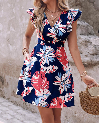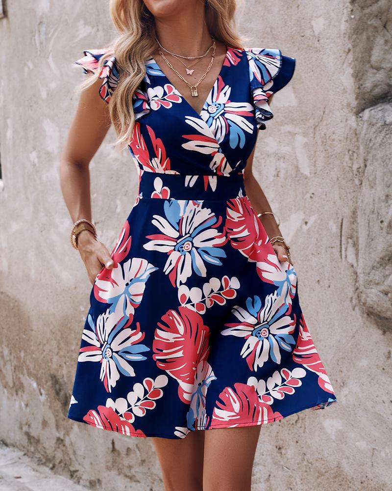 Floral Print Ruffle Hem Casual Dress