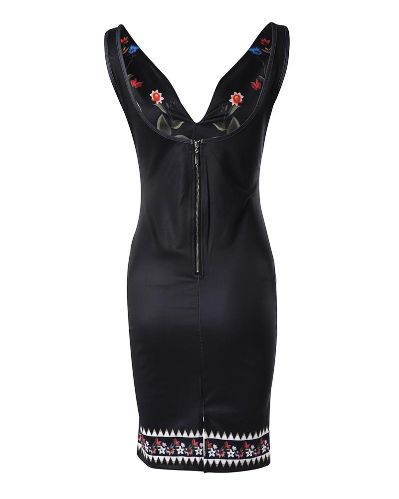 Floral Print Sleeveless Bodycon Dress