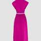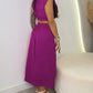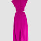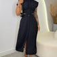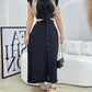 Floral Print Stand Collar Sleeveless Button Down Casual Dress Cutout Elastic Waist Back Maxi Dress