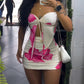 Floral Print Strapless Tied Top /w Ruched Mini Skirt Set Two Piece Outfit