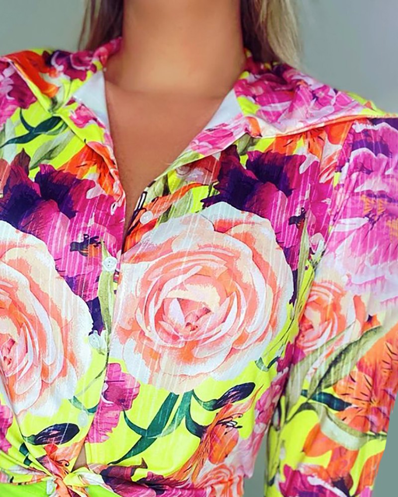 Floral Print Tie Front Long Sleeve Shirt