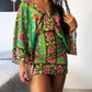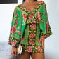 Floral Print V Neck Batwing Sleeve Tied Detail Backless Mini Dress