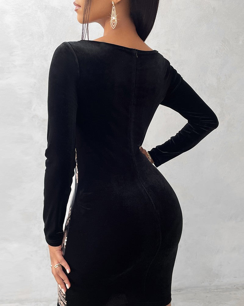 Floral Sequin Velvet Party Dress