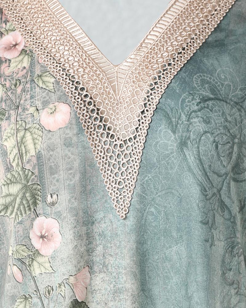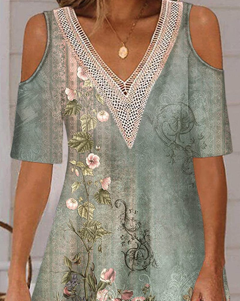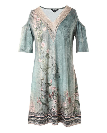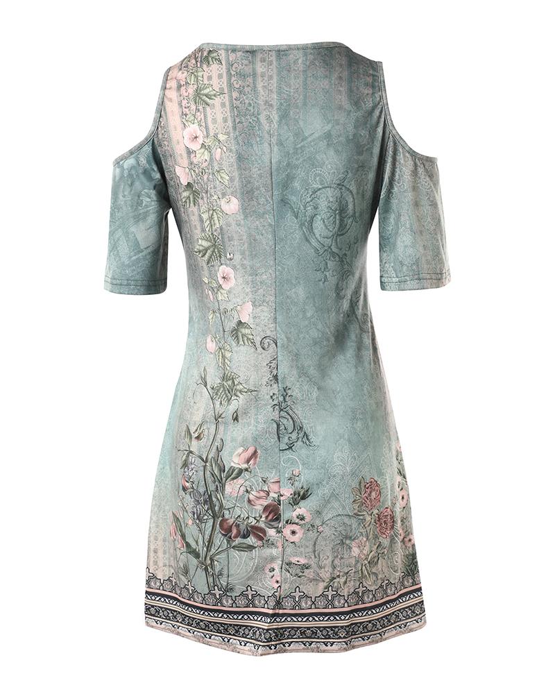 Floral Tribal Print Cold Shoulder Casual Dress