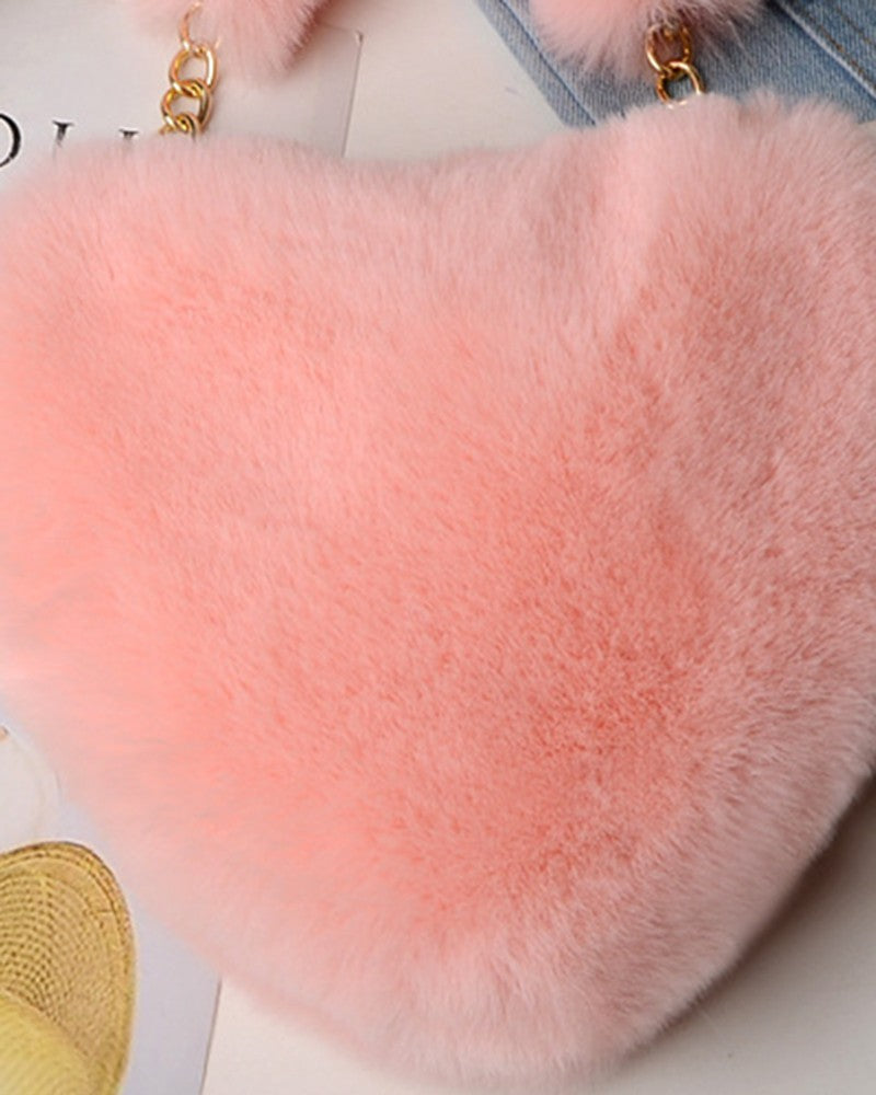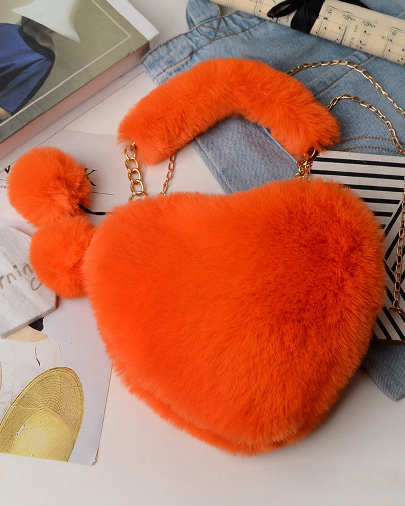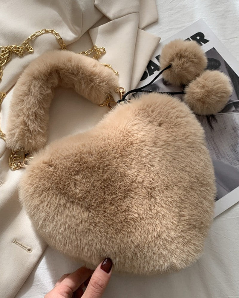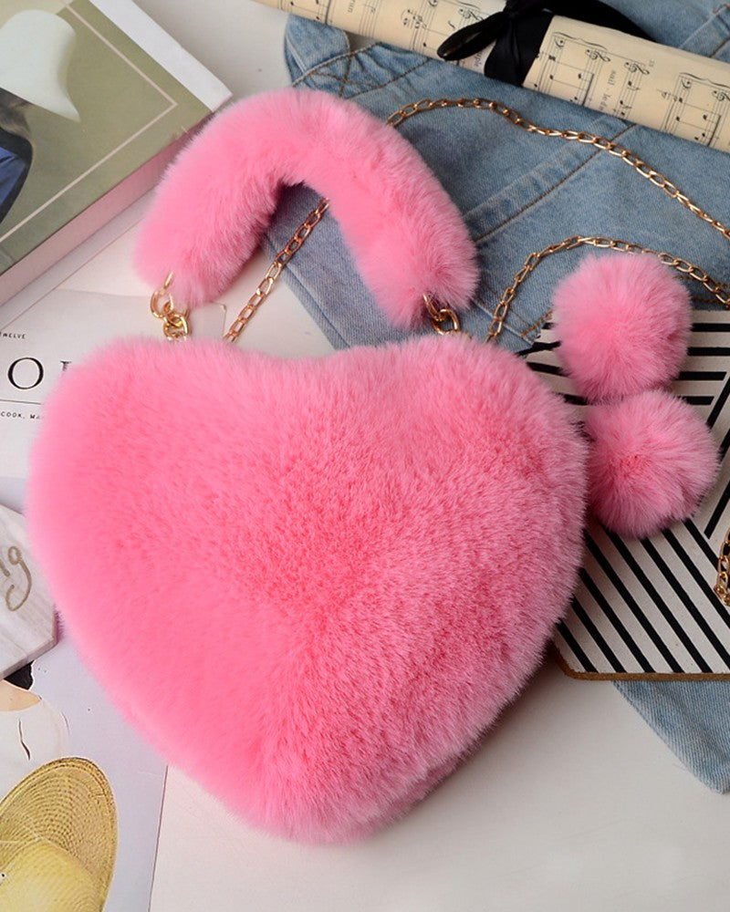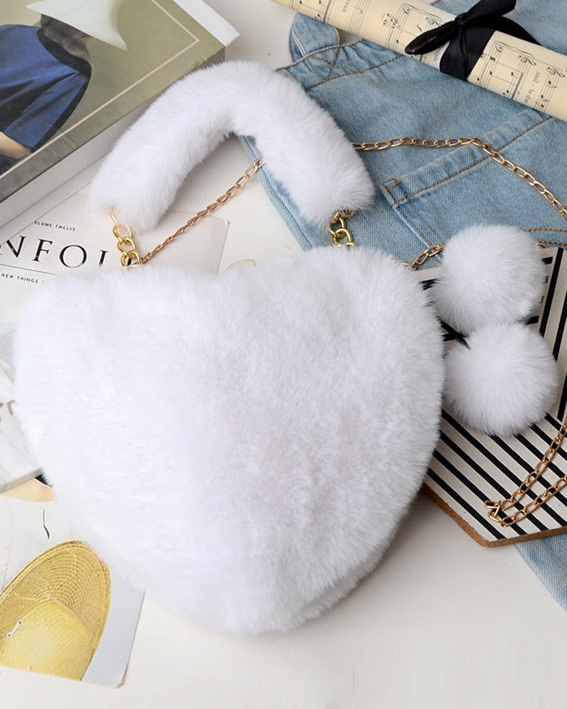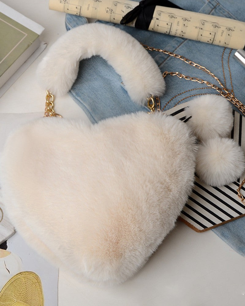 Fluffy Heart Shaped Pom Pom Chain Strap Handbag