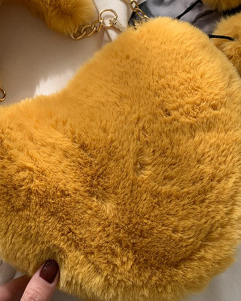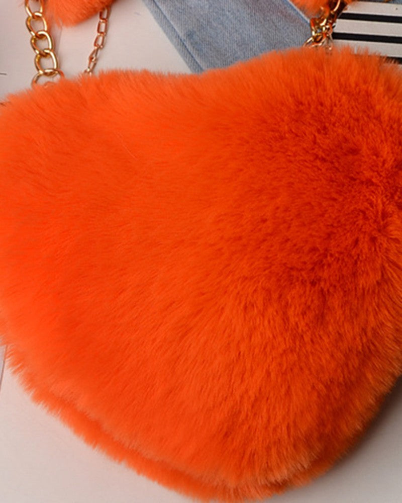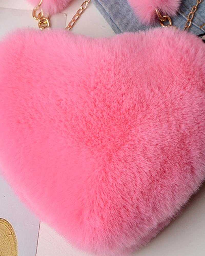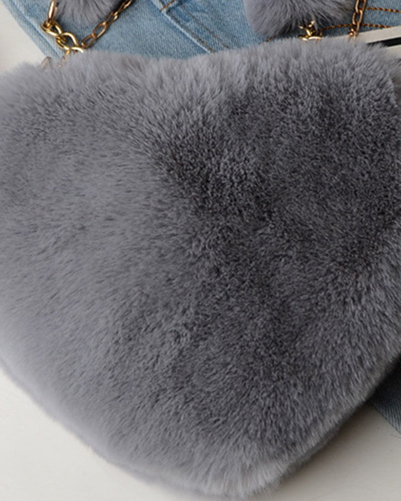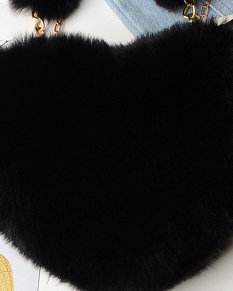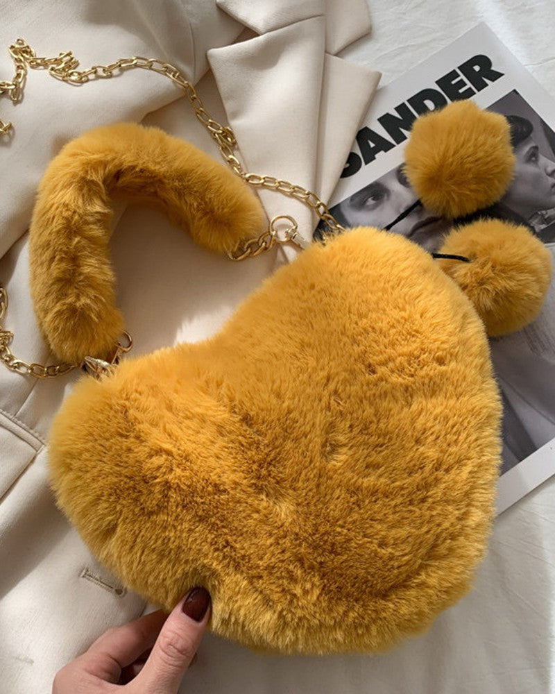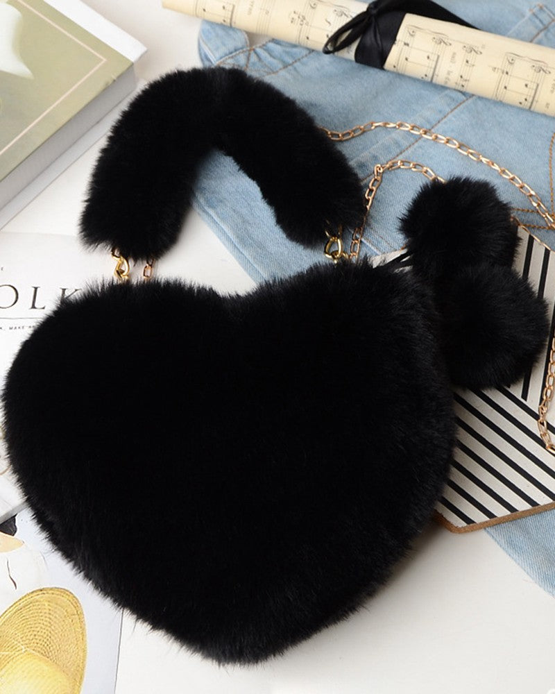 Fluffy Heart Shaped Pom Pom Chain Strap Handbag