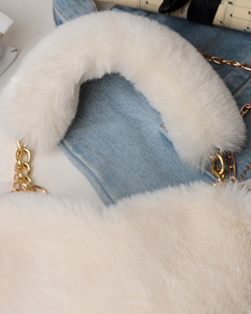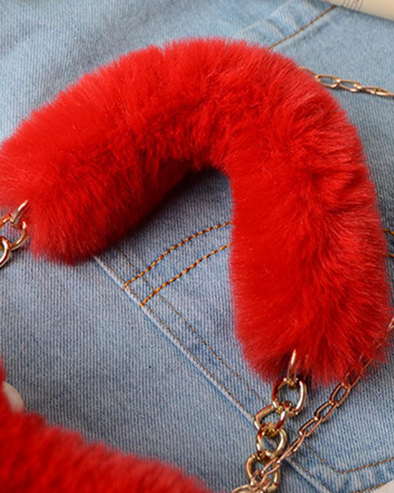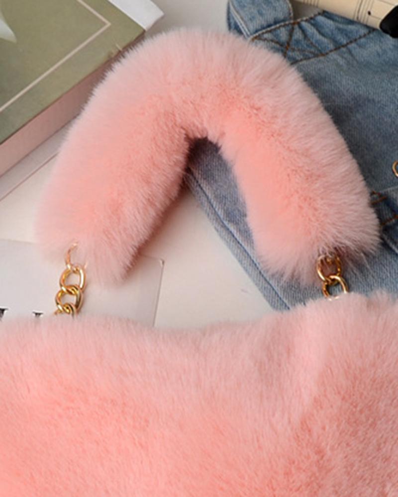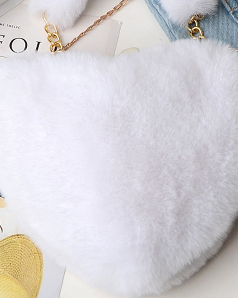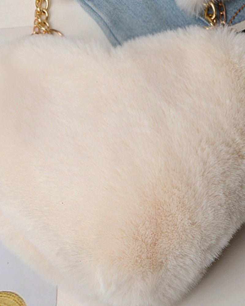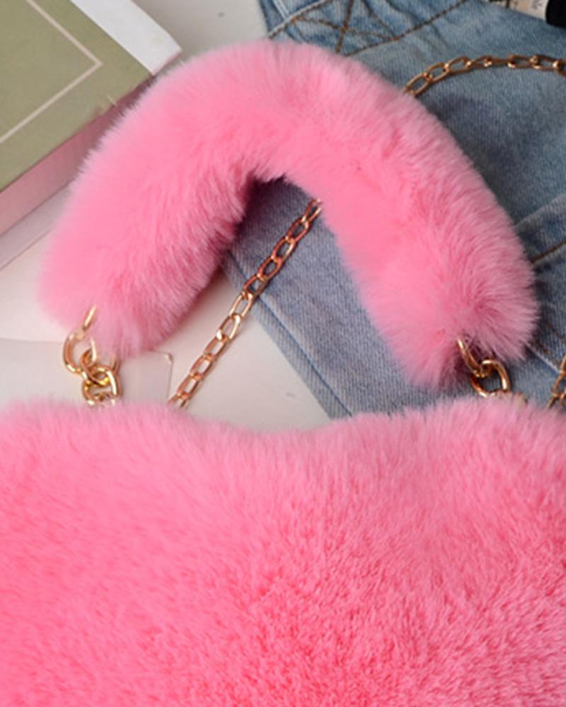 Fluffy Heart Shaped Pom Pom Chain Strap Handbag