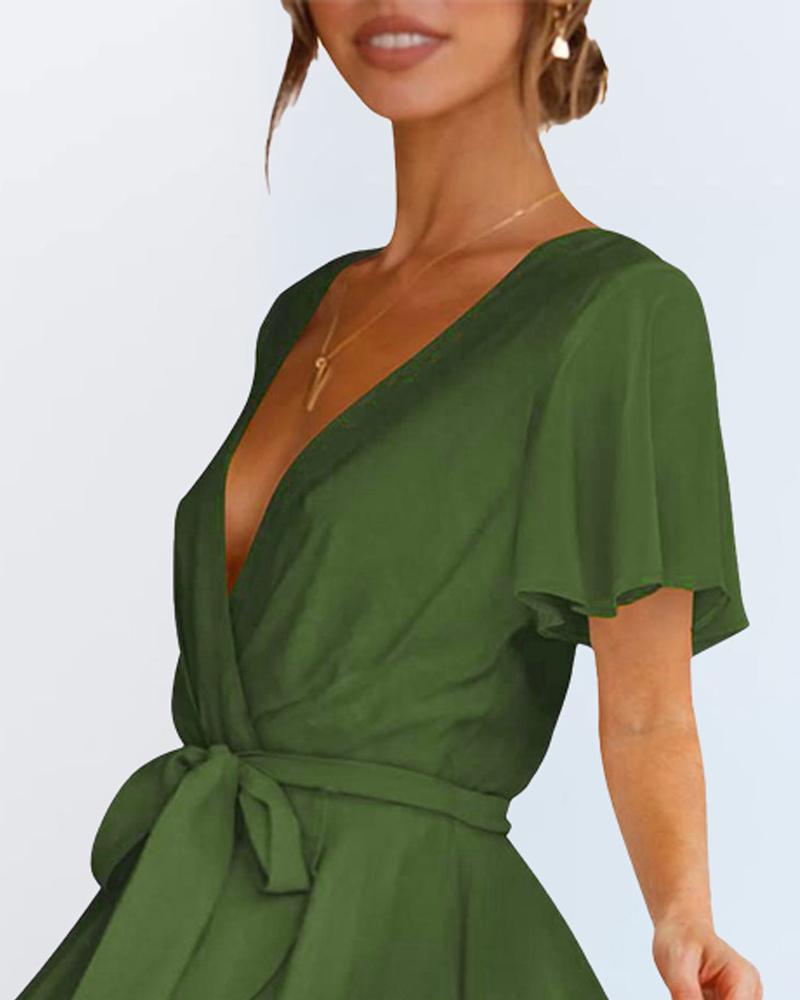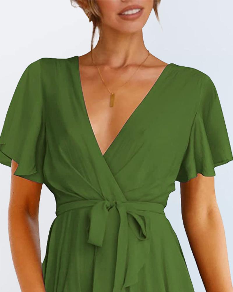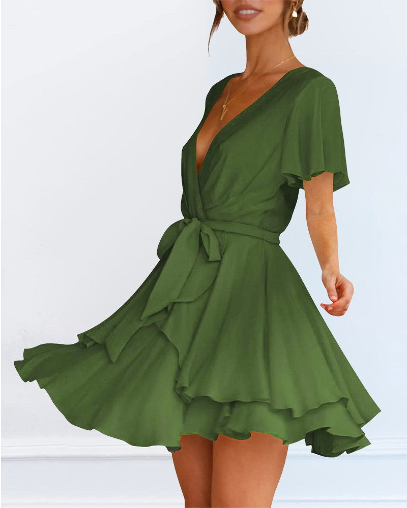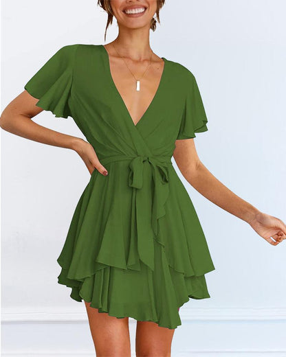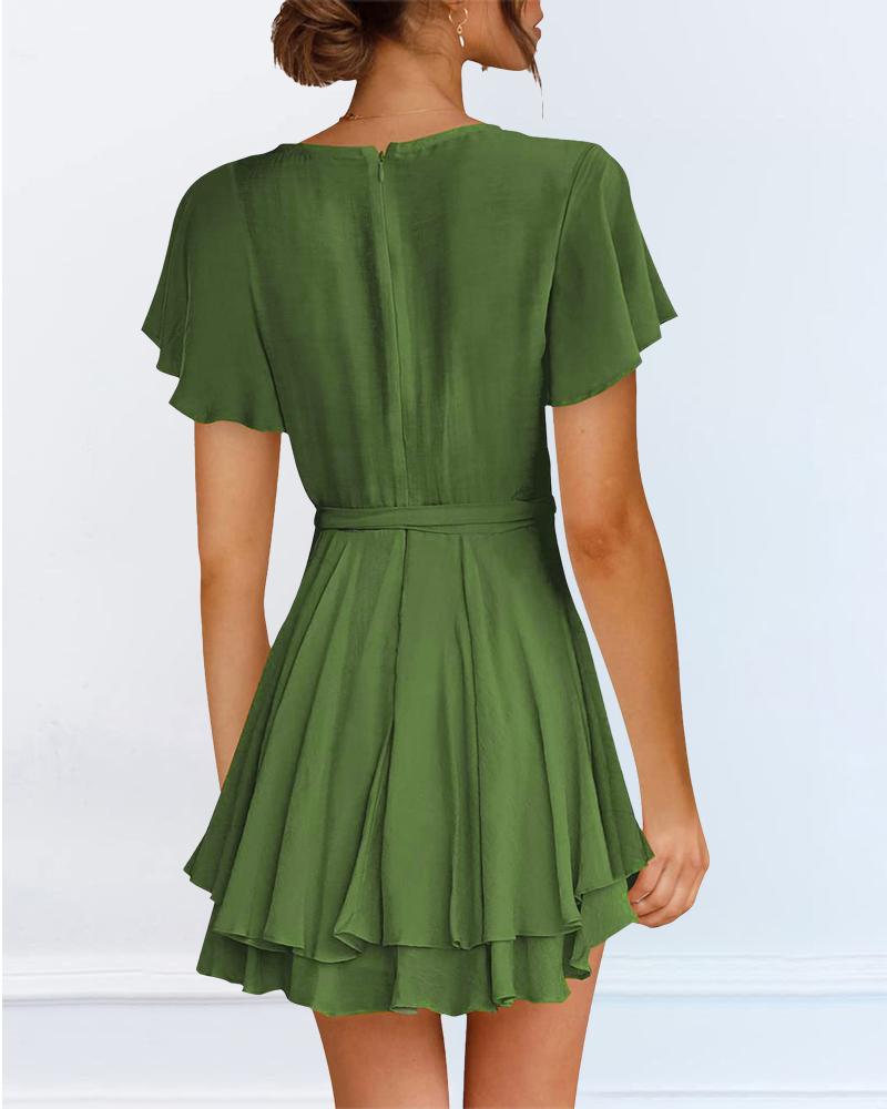 Flutter Sleeve Ruffle Hem Belted Casual Dress