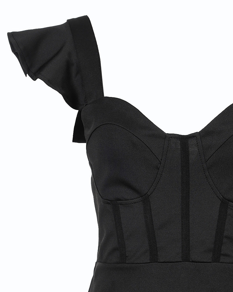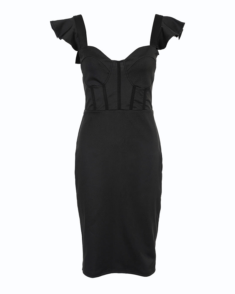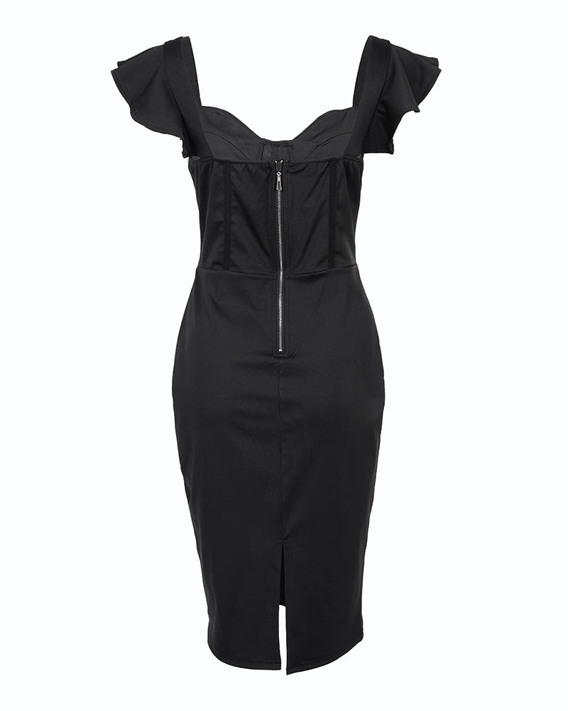 Flutter Sleeve Zipper Design Slit Bodycon Dress