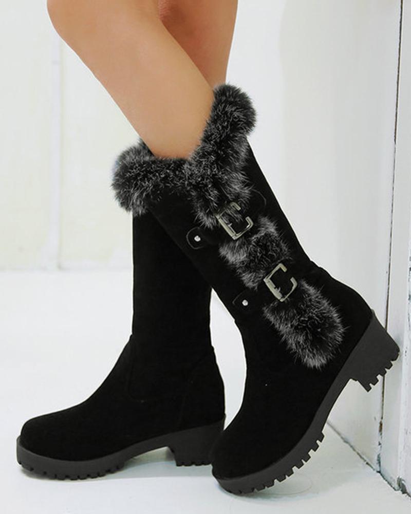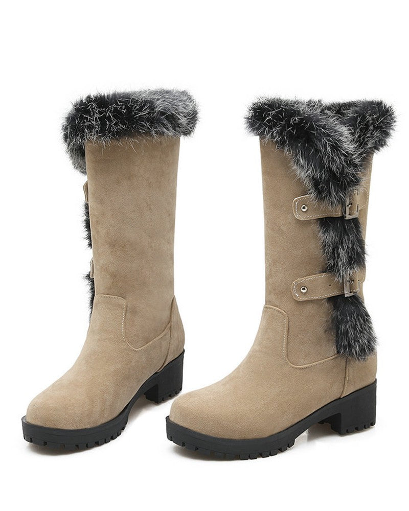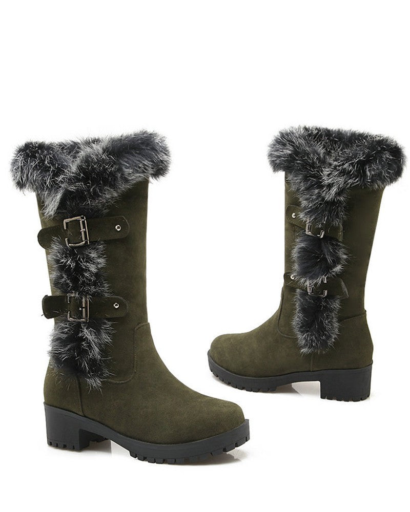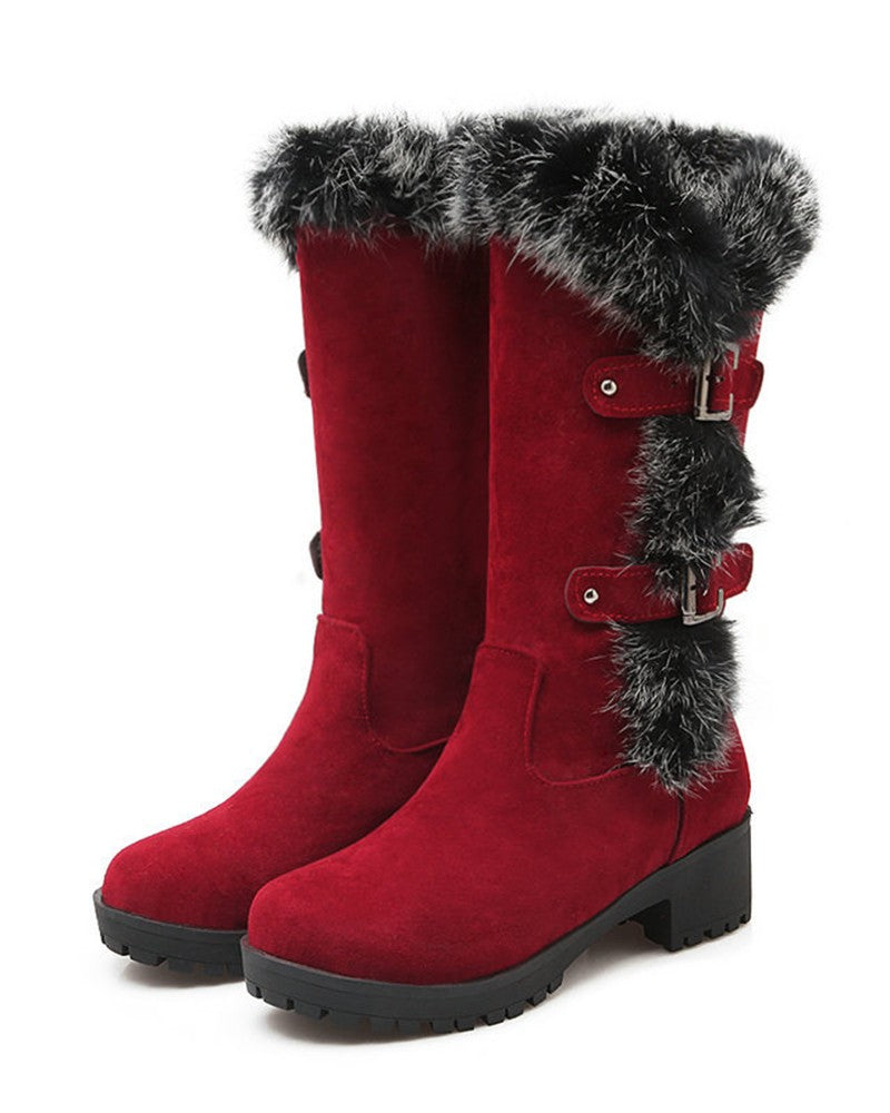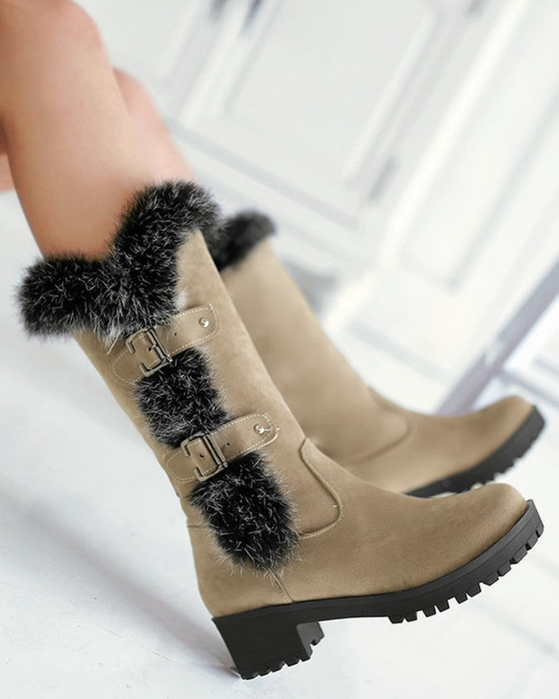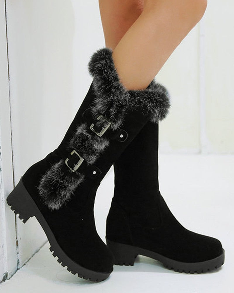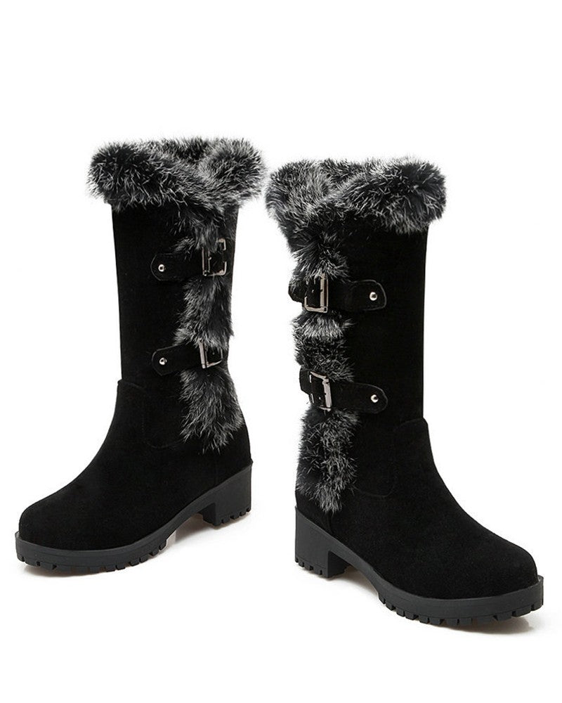 Fuzzy Detail Buckled Lined Calf Snow Boots