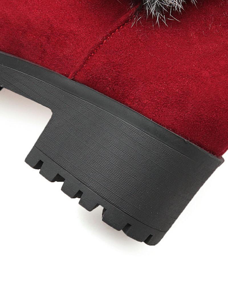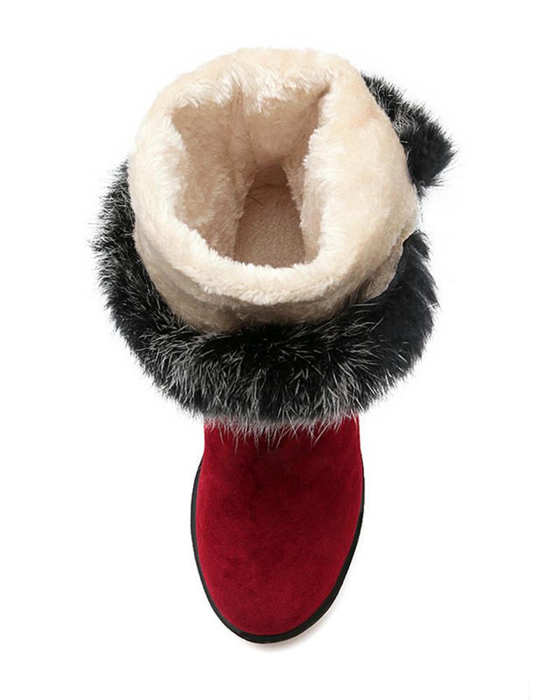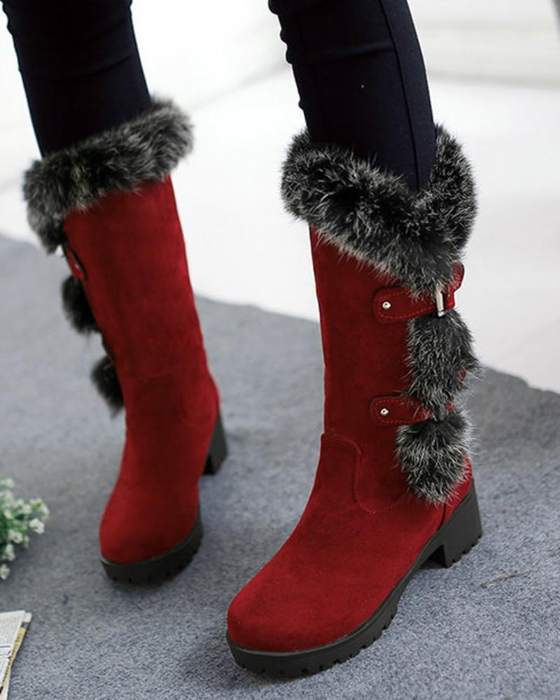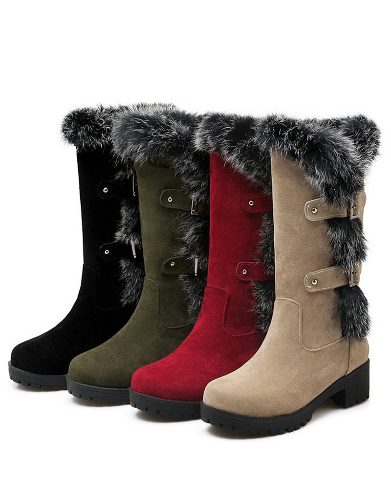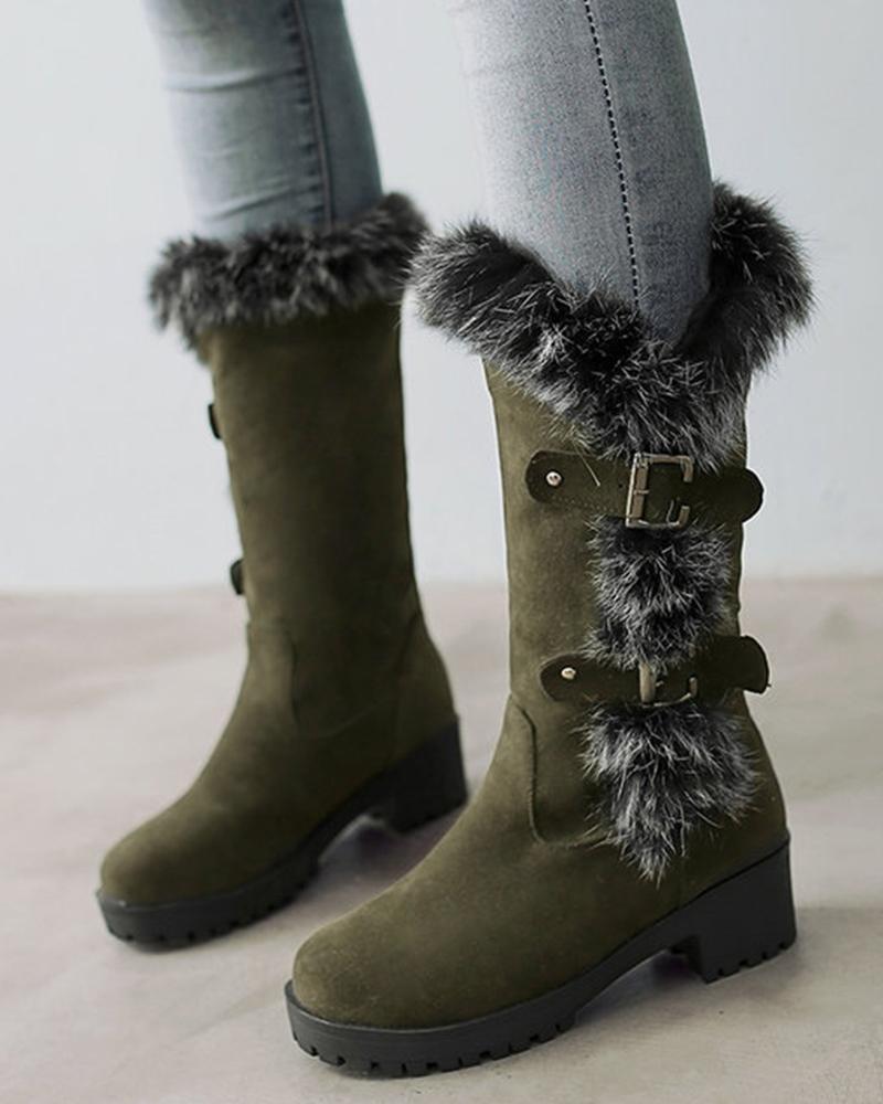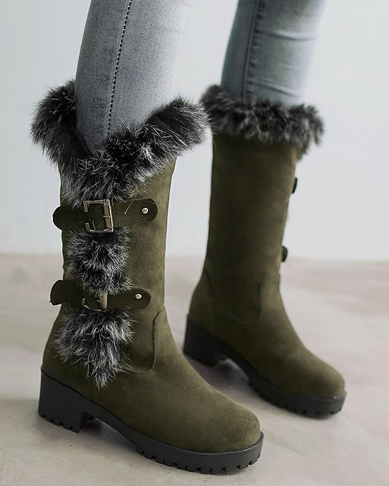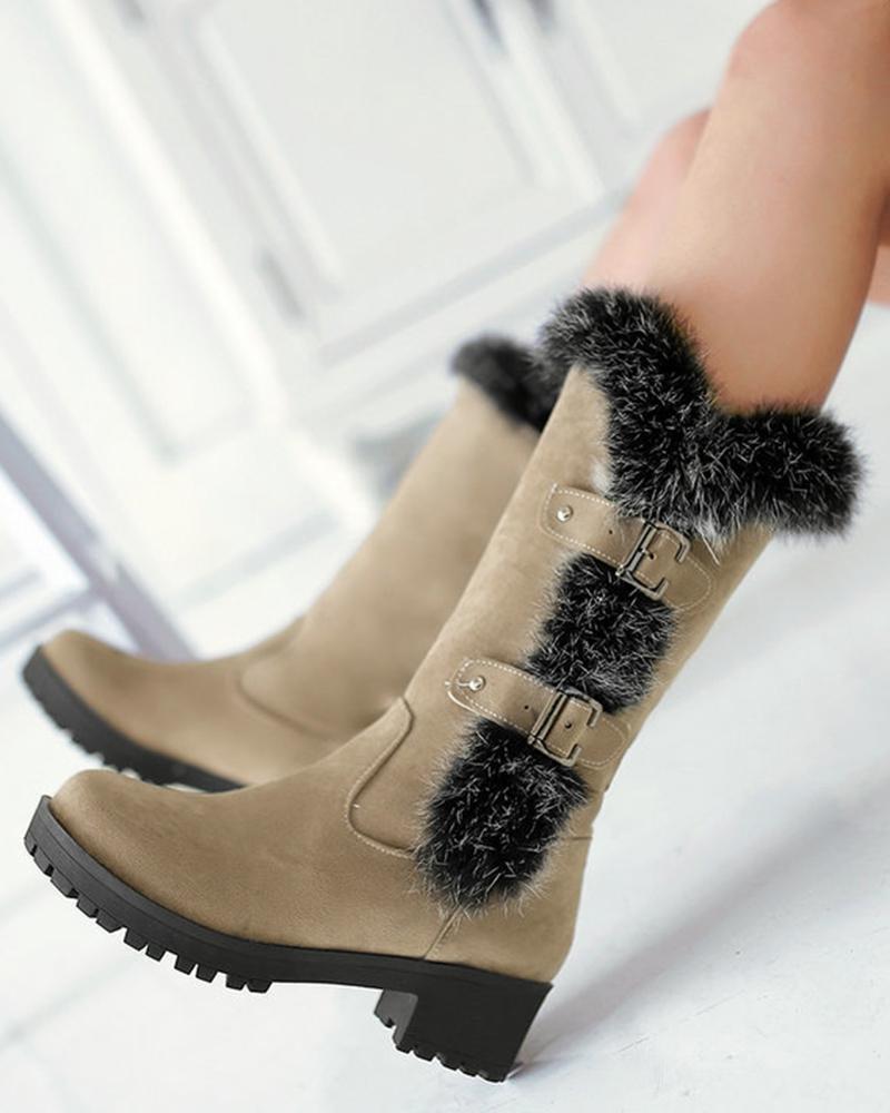 Fuzzy Detail Buckled Lined Calf Snow Boots