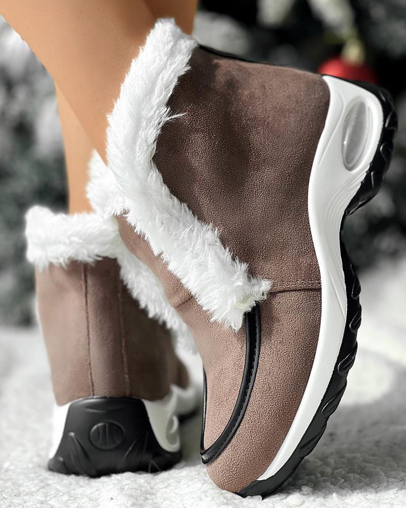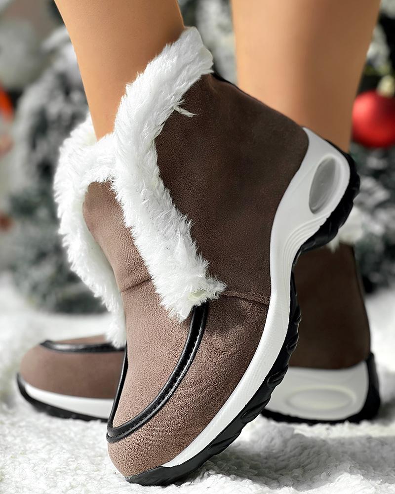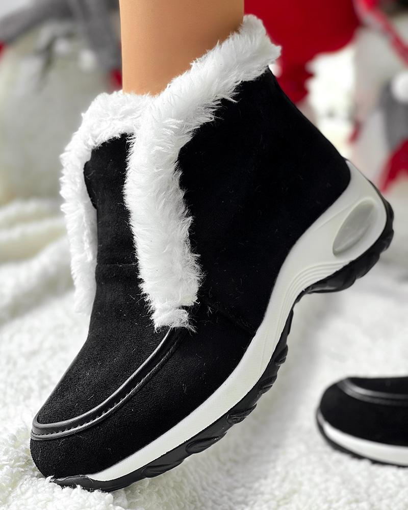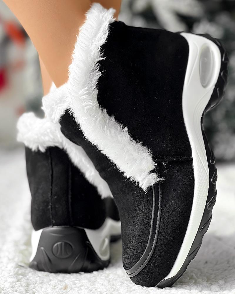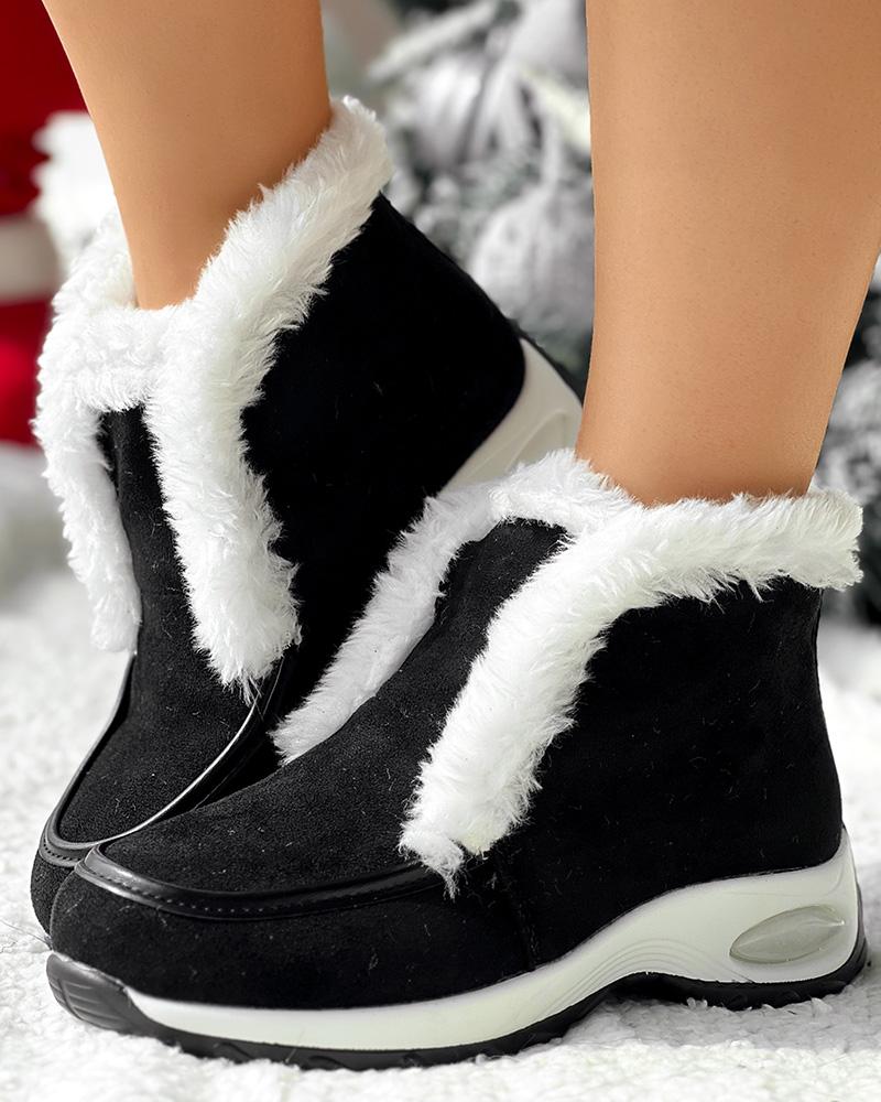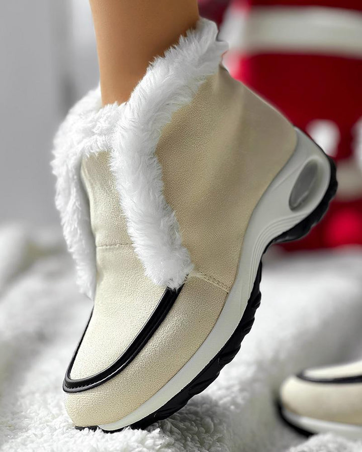 Fuzzy Detail Lined Warm Ankle Boots