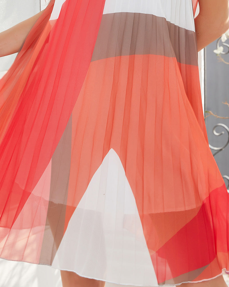 Geo Print Chiffon Pleated Flowy Swing Dress