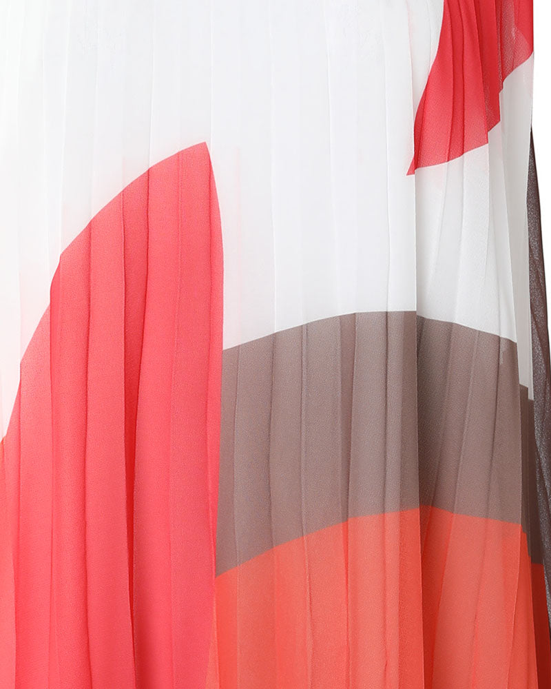 Geo Print Chiffon Pleated Flowy Swing Dress