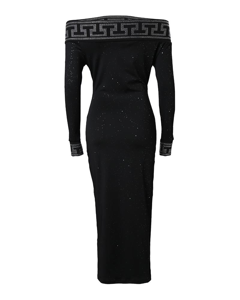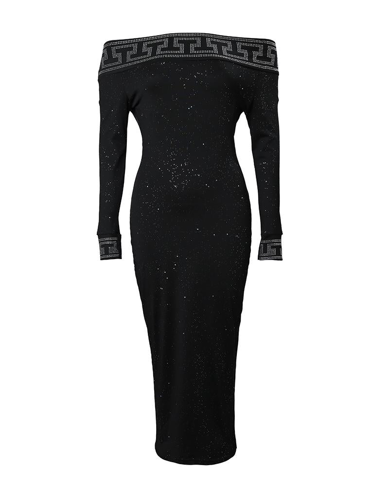 Geo Rhinestone Off Shoulder Glitter Bodycon Dress
