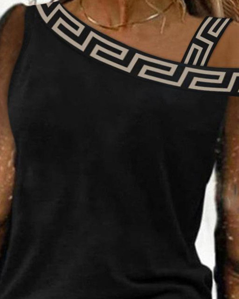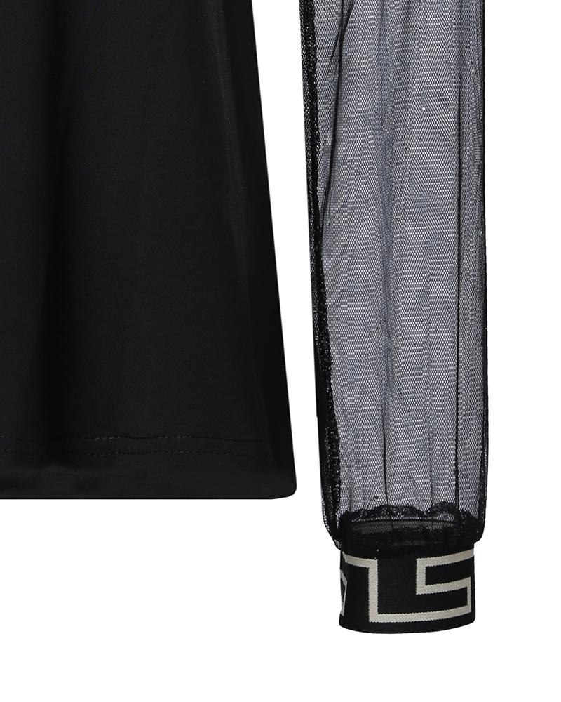 Geo Trim Contrast Mesh Cold Shoulder Top
