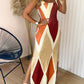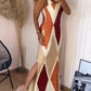 Geometric Print Casual Slim Fit Slit Maxi Strappy Dress