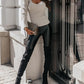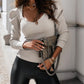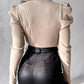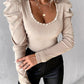 Gigot Sleeve Beaded Slim Fit Ribbed Top