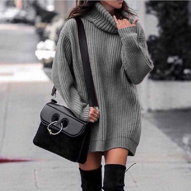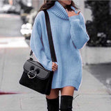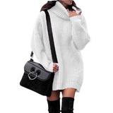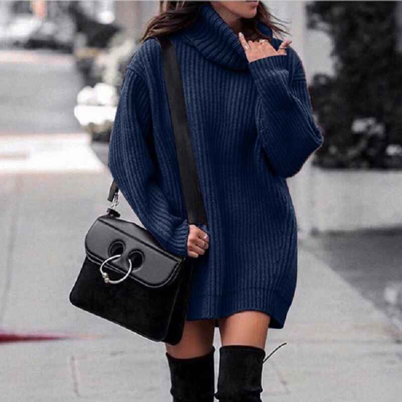 Women Turtleneck Long Lantern Sleeve Casual Loose Oversized Sweater Dress Soft Winter Pullover Dresses K014