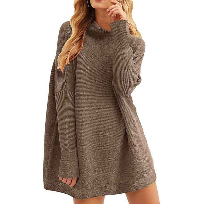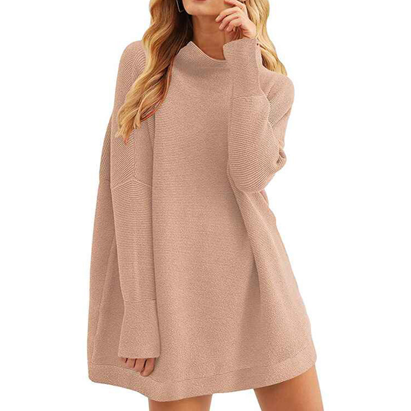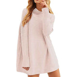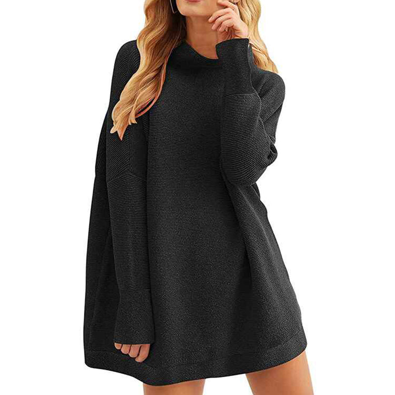 Women Polo Neck Long Slim Fitted Dress Bodycon Turtleneck Cable Knit Sweater K021