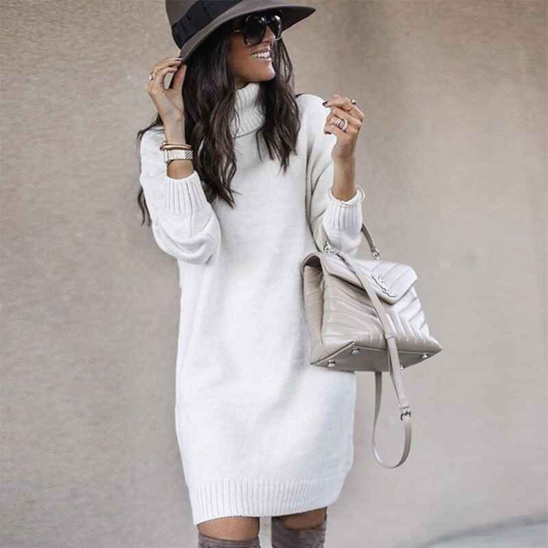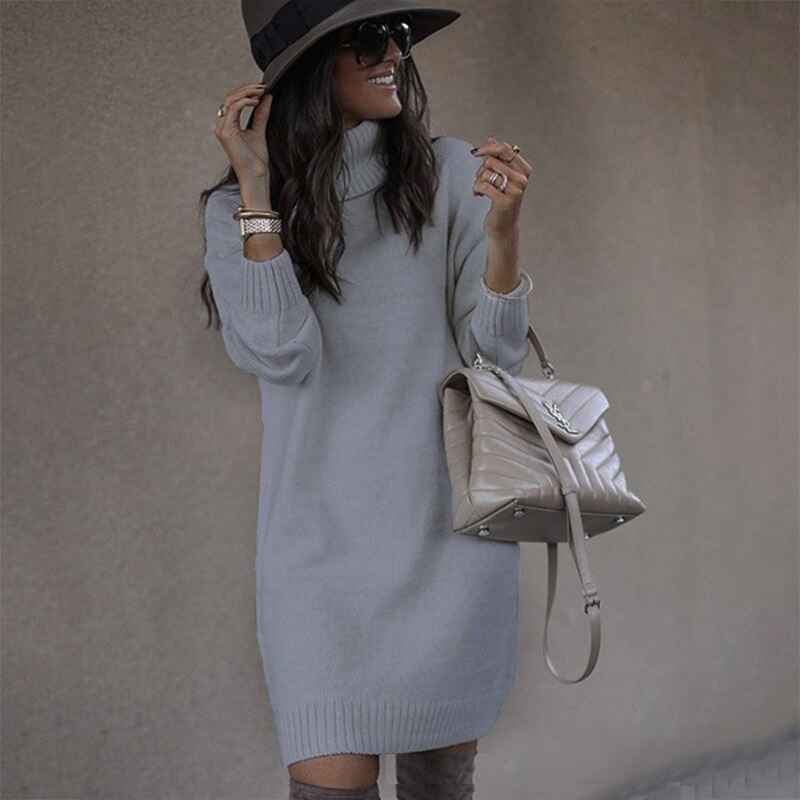Women's Long Sleeve Turtleneck Sweater Dresses Knitted Bodycon Midi Sheath Jumper Dresses K024