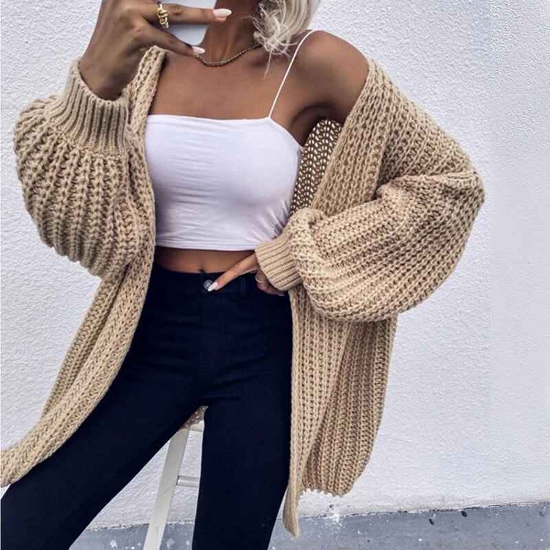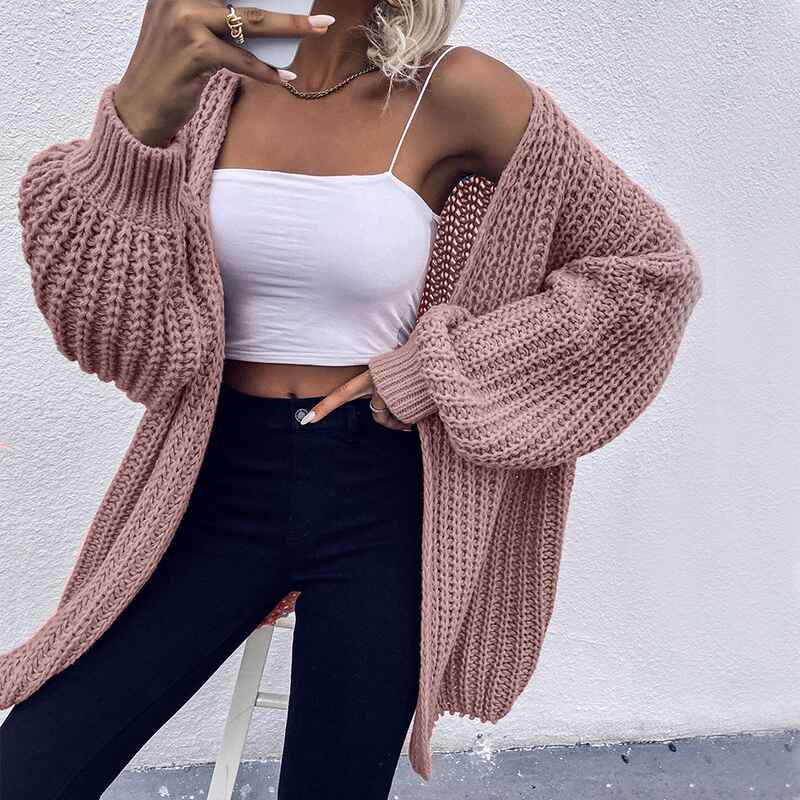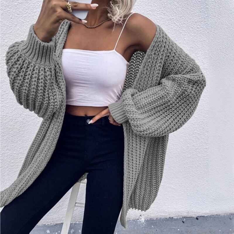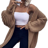 Womens Winter Open Front Long Sleeve Chunky Cable Knit Cardigan Sweater Coats K037