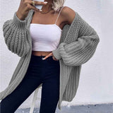 Women's Winter Open Front Long Sleeve Chunky Cable Knit Cardigan Sweater Coats K037
