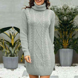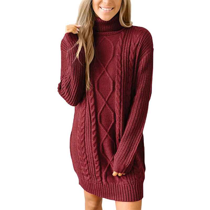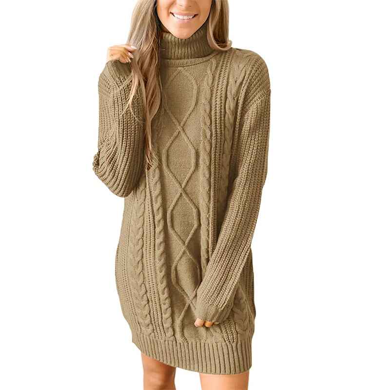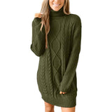 Women Turtleneck Cable Knit Sweater Dress Casual Loose Long Sleeve Mini Pullover K056