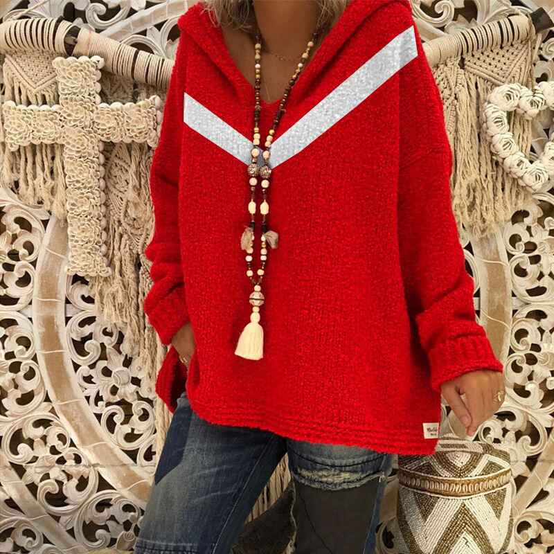 Women's Striped Color Block Hoodies Fashion V Neck Knit Sweater Pullovers K061