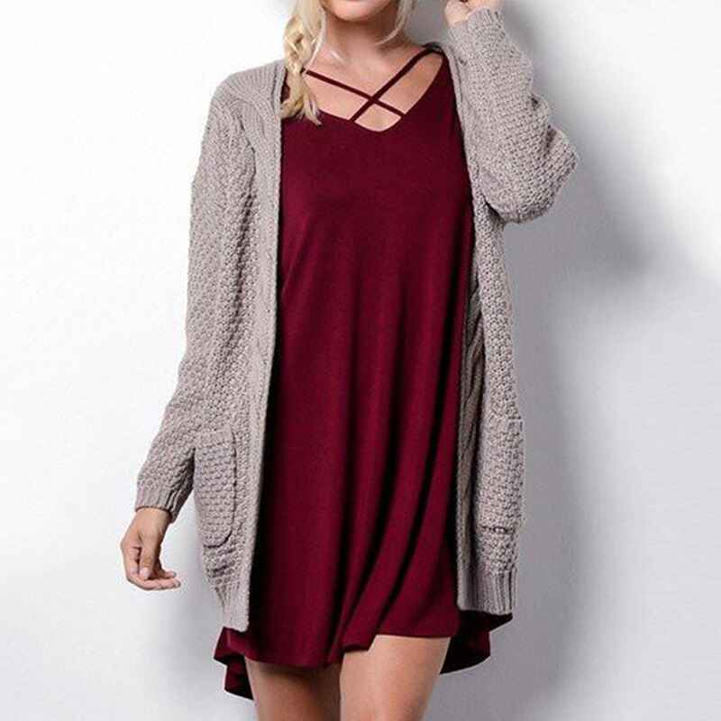 Womens Fashion Open Front Long Sleeve Cardigans Sweaters Coats with Pockets K070