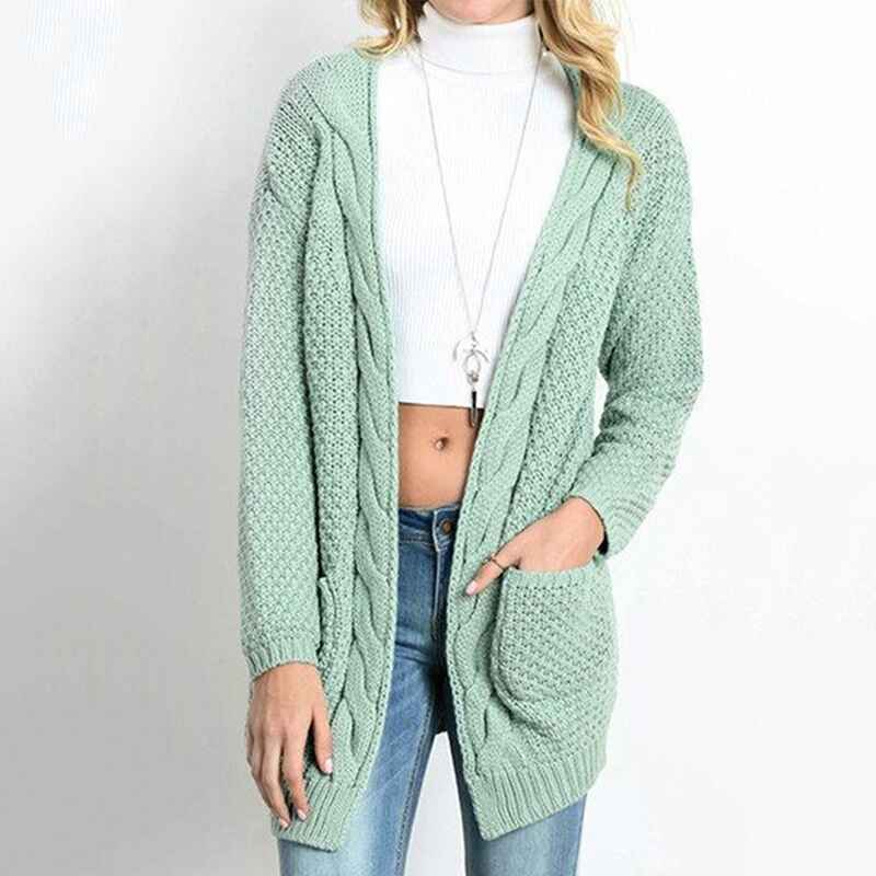 Women's Fashion Open Front Long Sleeve Cardigans Sweaters Coats with Pockets K070