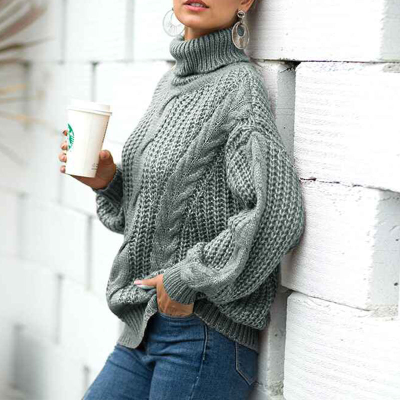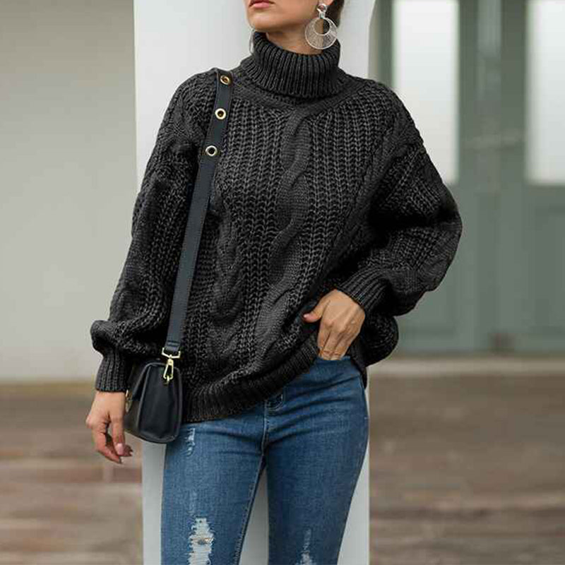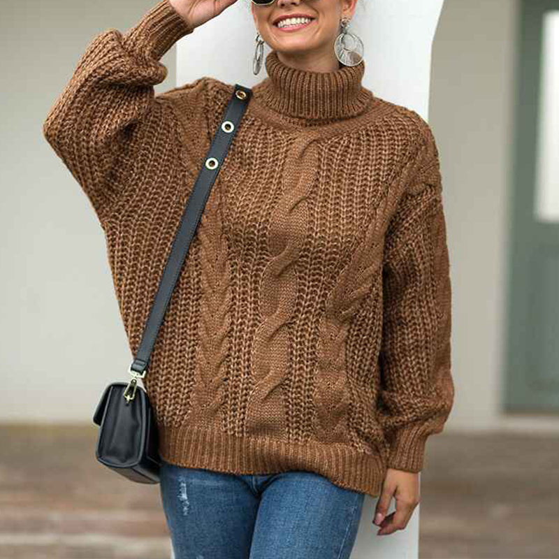Womens Winter Fall Solid Turtleneck High Neck Balloon Long Sleeve Sweaters Pullover Outerwear K072