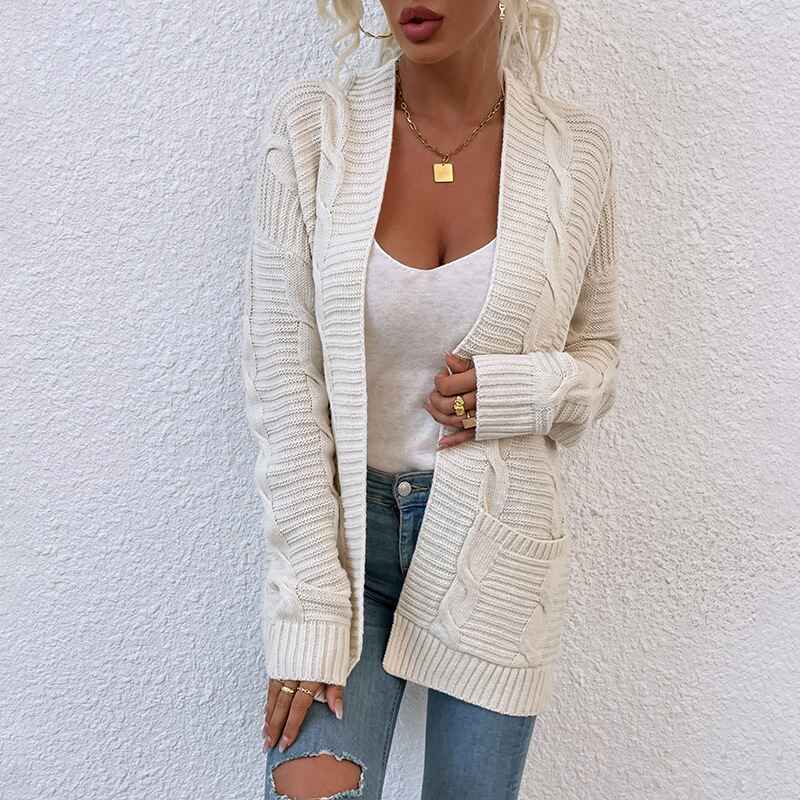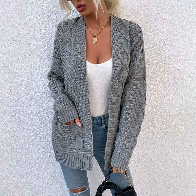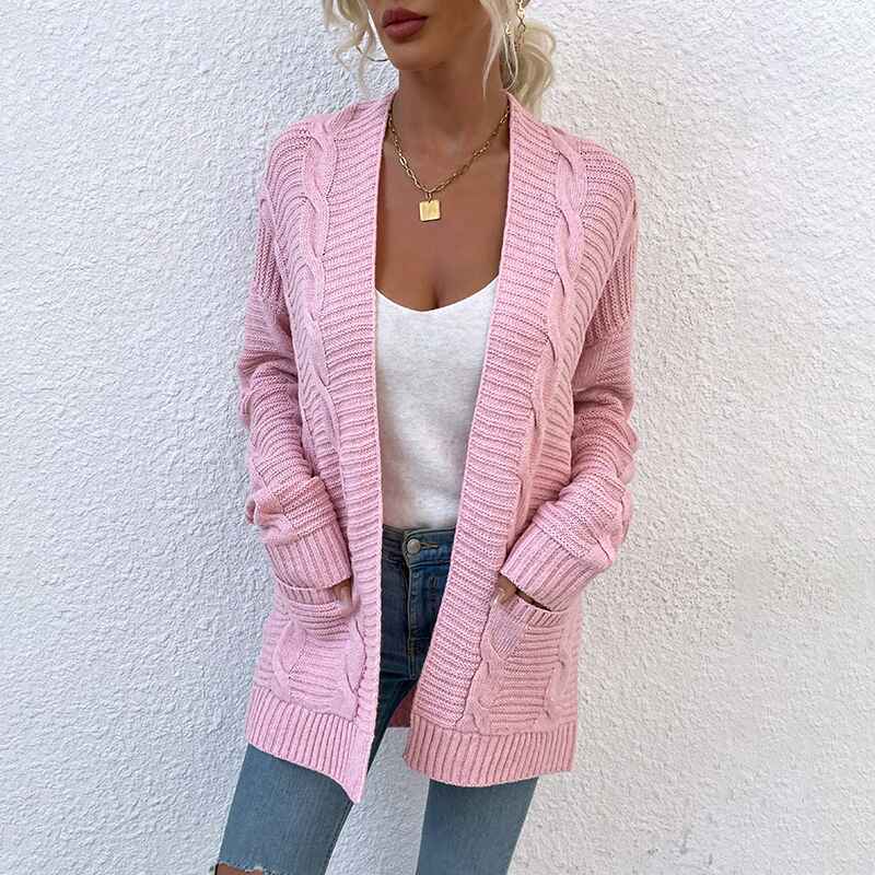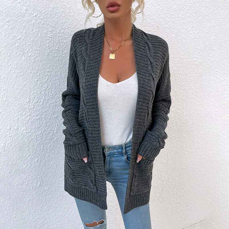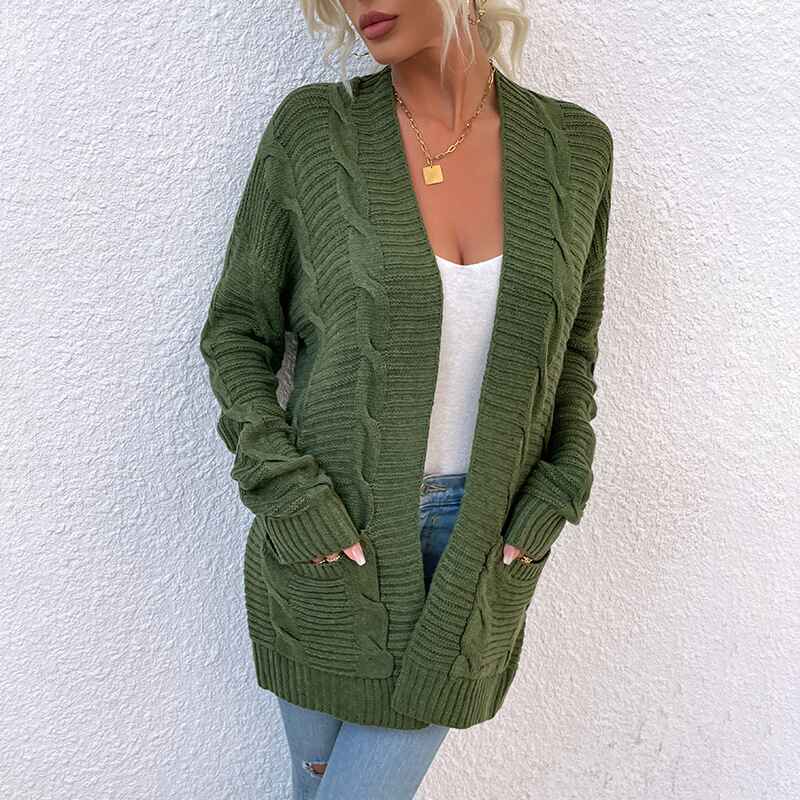 Women's Open Front Cardigan Sweaters Fashion Button Down Cable Kint Chunky Outwear Winter Coats K076