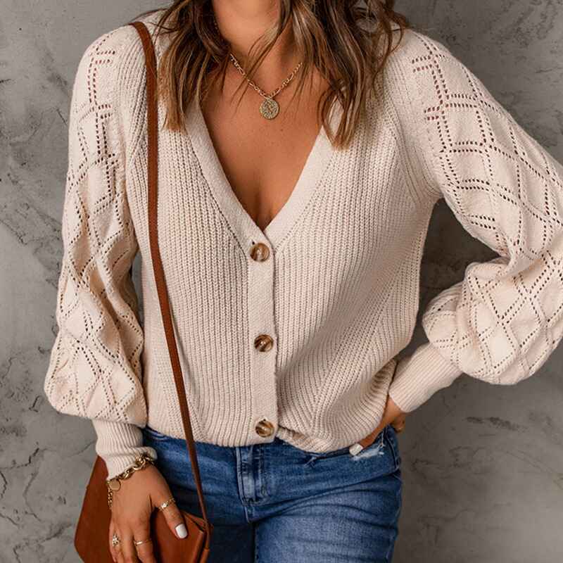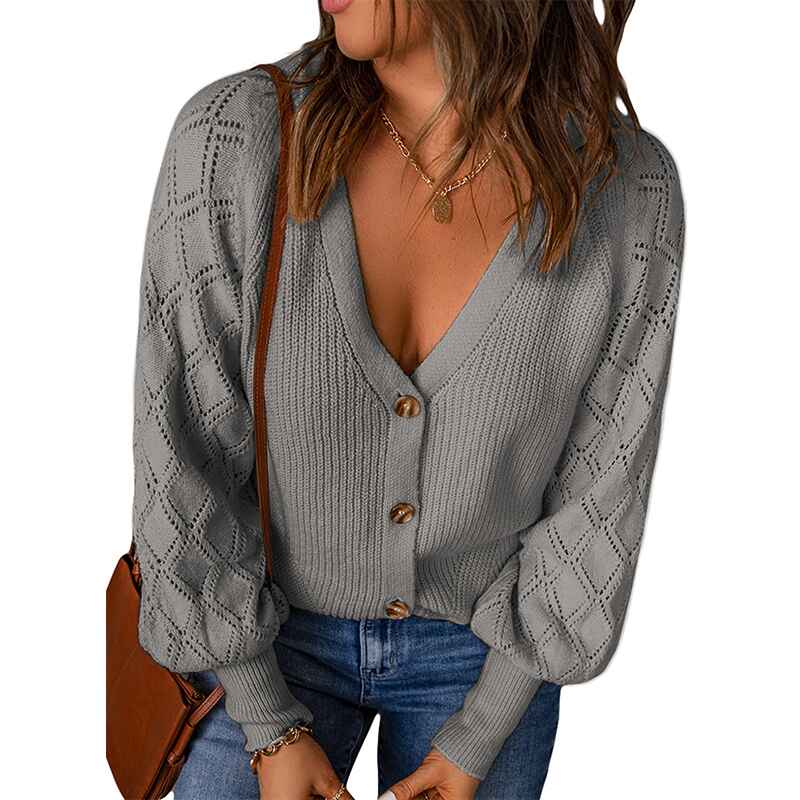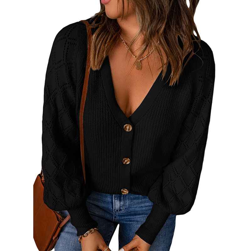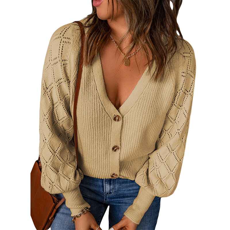 Women's Long Sleeve Cable Knit Button Cardigan Sweater Open Front Outwear Coat with Pockets K097