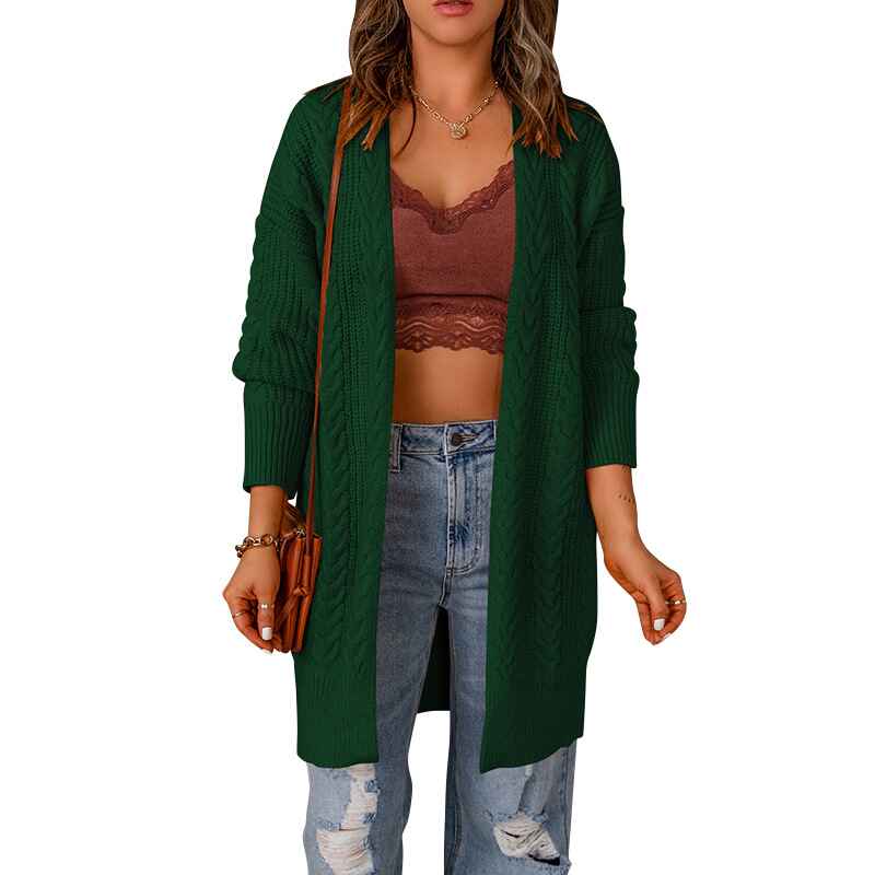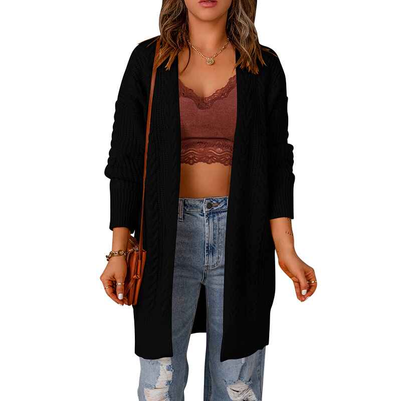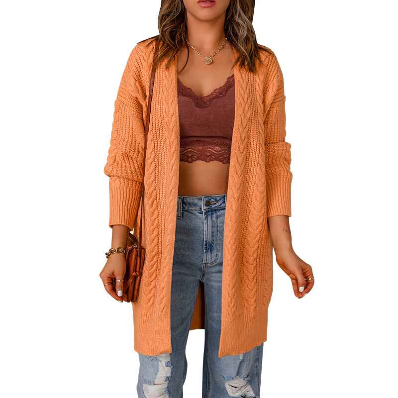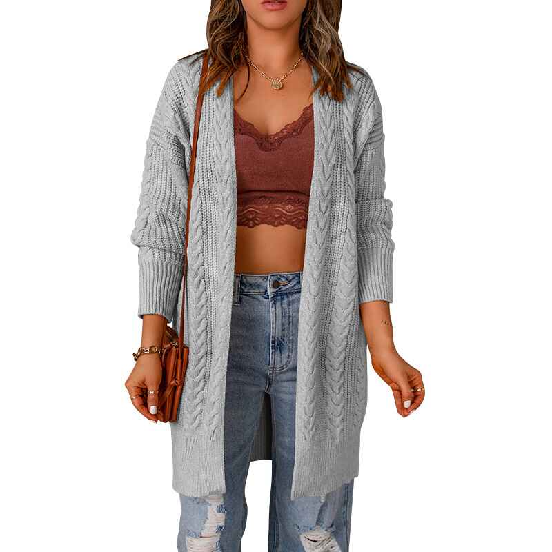 Women's Long Sleeve Cable Knit Cardigan Sweaters Open Front Fall Outwear Coat K102