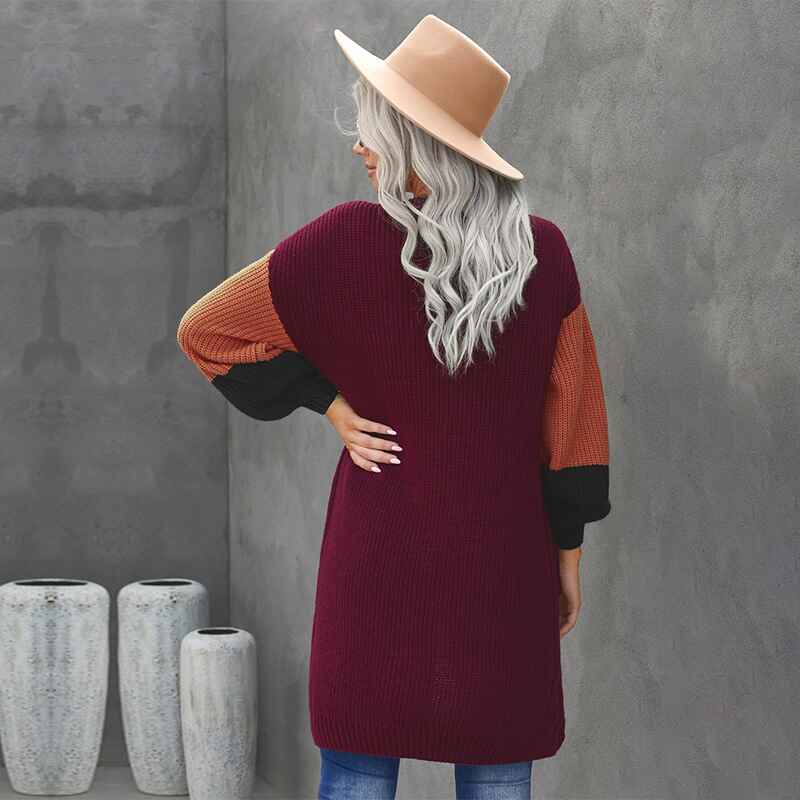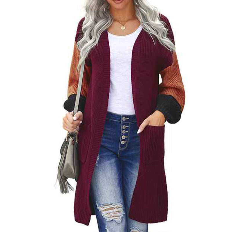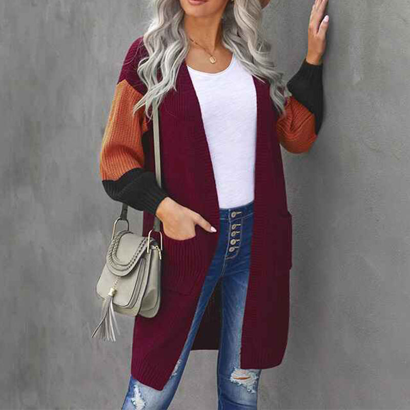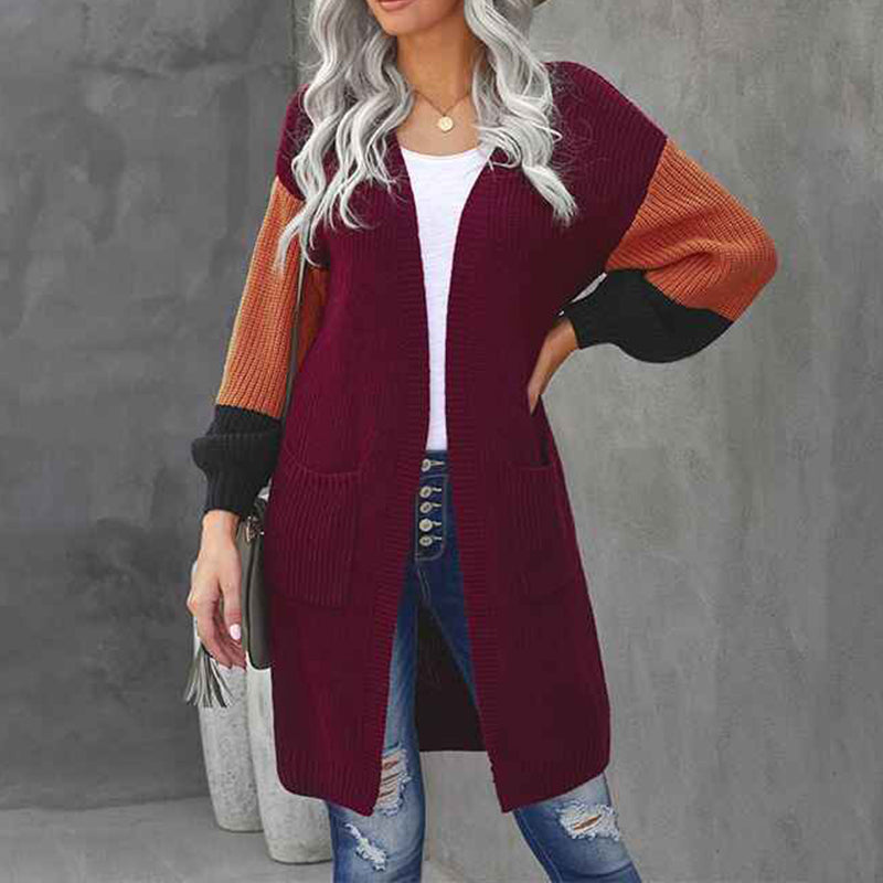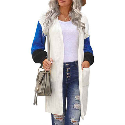 Women's Cable Knit Open Front Long Sleeve Cardigan Sweater With Pocket K103